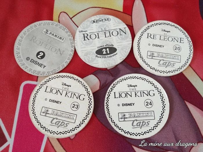Lot de 5 pogs sur Le roi lion de Disney (différentes collection)