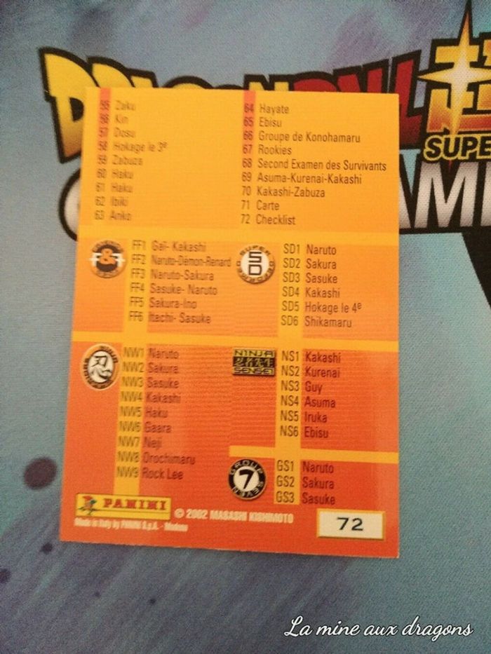 Carte Naruto Ninja Ranks Checklist 72 Check list Panini Card CCG rare 2002 - photo numéro 1
