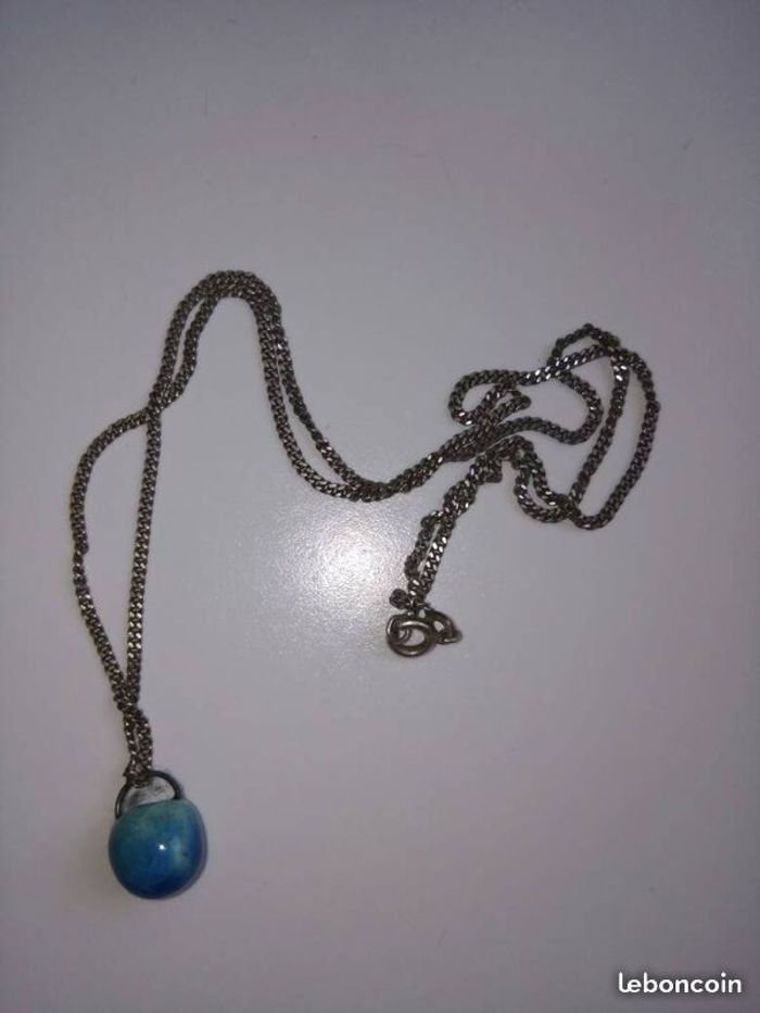 Pendentif boule céramique bleu avec collier avec chaine
