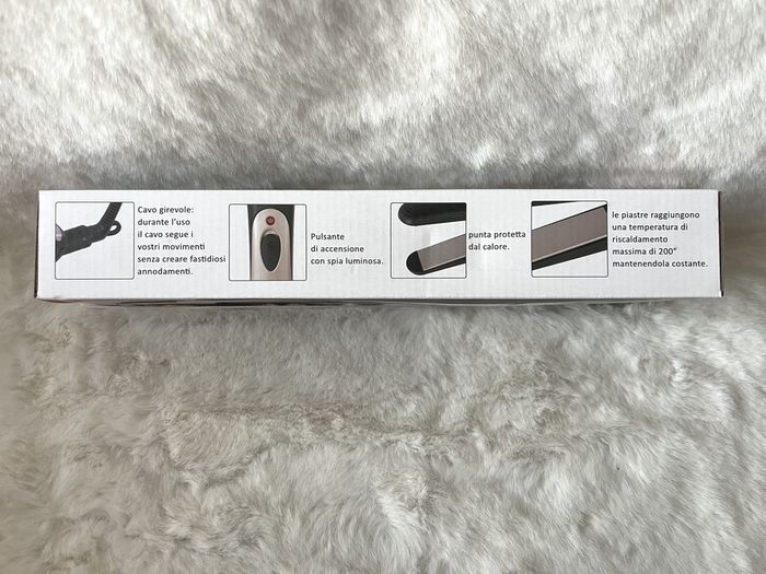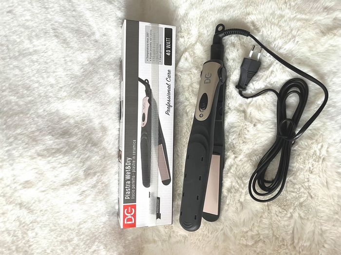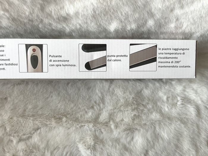 Lisseur pour cheveux Neuf, carton cerclé Modèle d'expo pris en photo à côté du lisseur dans sa boîte cerclée