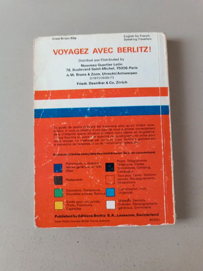 L'anglais pour le voyage Berlitz 1500 locutions 2000 mots utiles guide de tourisme emplettes restaurant hôtel pour boire visite touristique distraction. Voici le lien pour voir tous mes livres : #romain75015_Livres. Envoi rapide et soigné bien protégé pour le transport. N'hésitez pas à faire un lot pour avoir des réductions et mutualiser les frais de port.