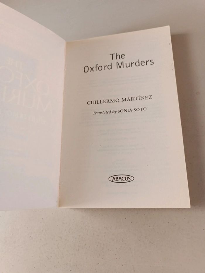 The Oxford murders Guillermo Martinez. Livre en anglais. Prix neuf 18 $ canadien. Voici le lien pour voir tous mes livres : #romain75015_Livres. Envoi rapide et soigné bien protégé pour le transport. N'hésitez pas à faire un lot pour avoir des réductions et mutualiser les frais de port.