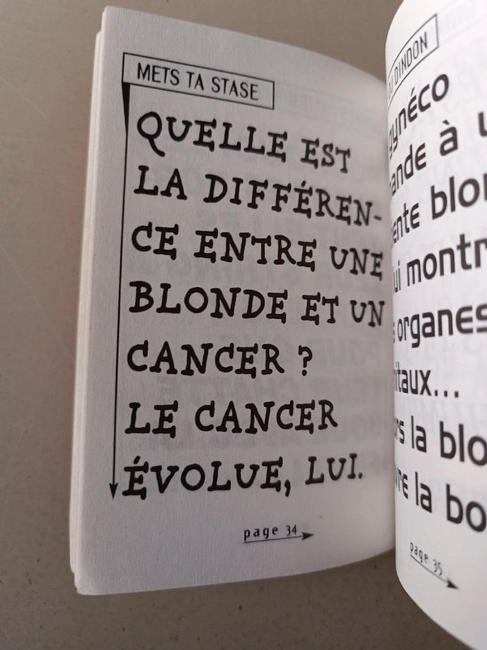 Collector le petit livre des mini blagues entre amis vraies blondes et gros macho. Voici le lien pour voir tous mes livres : #romain75015_Livres. Envoi rapide et soigné bien protégé pour le transport. N'hésitez pas à faire un lot pour avoir des réductions et mutualiser les frais de port.