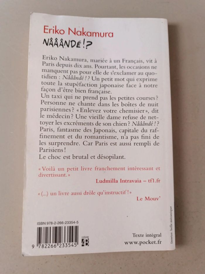 Nââândé !? des les tribulations d'une japonaise à Paris Eriko Nakamura. Le livre est un peu abîmé en haut à droite sur les dernières pages qui sont un peu gondoler à cause d' un peu d'eau. Voir dernières photos. Voici le lien pour voir tous mes livres pour réduire les frais de port et avoir des réductions automatiques par lot de 3 ou 5 : #romain75015_Livre. Envoi rapide et soigné, bien protégé pour le transport.