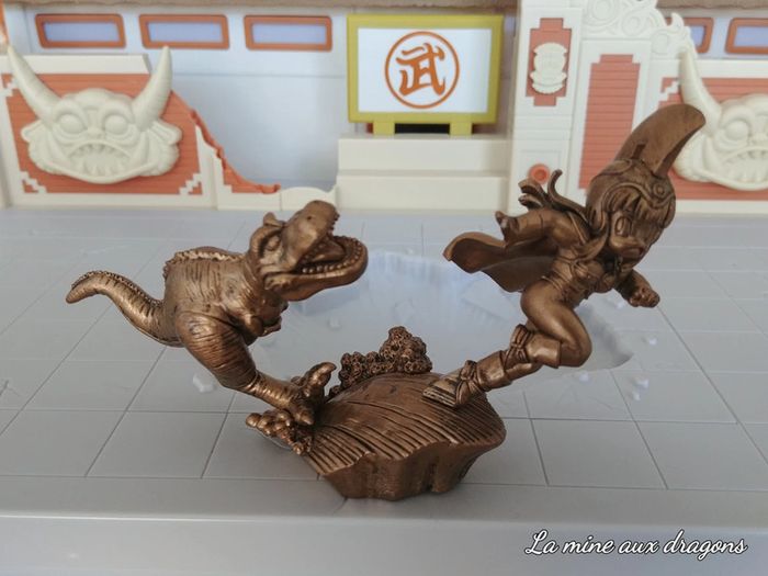 Figurine Dragon Ball de la collection Megahouse Neo Capsule de Chichi poursuivi par un dinosaure en version bronze