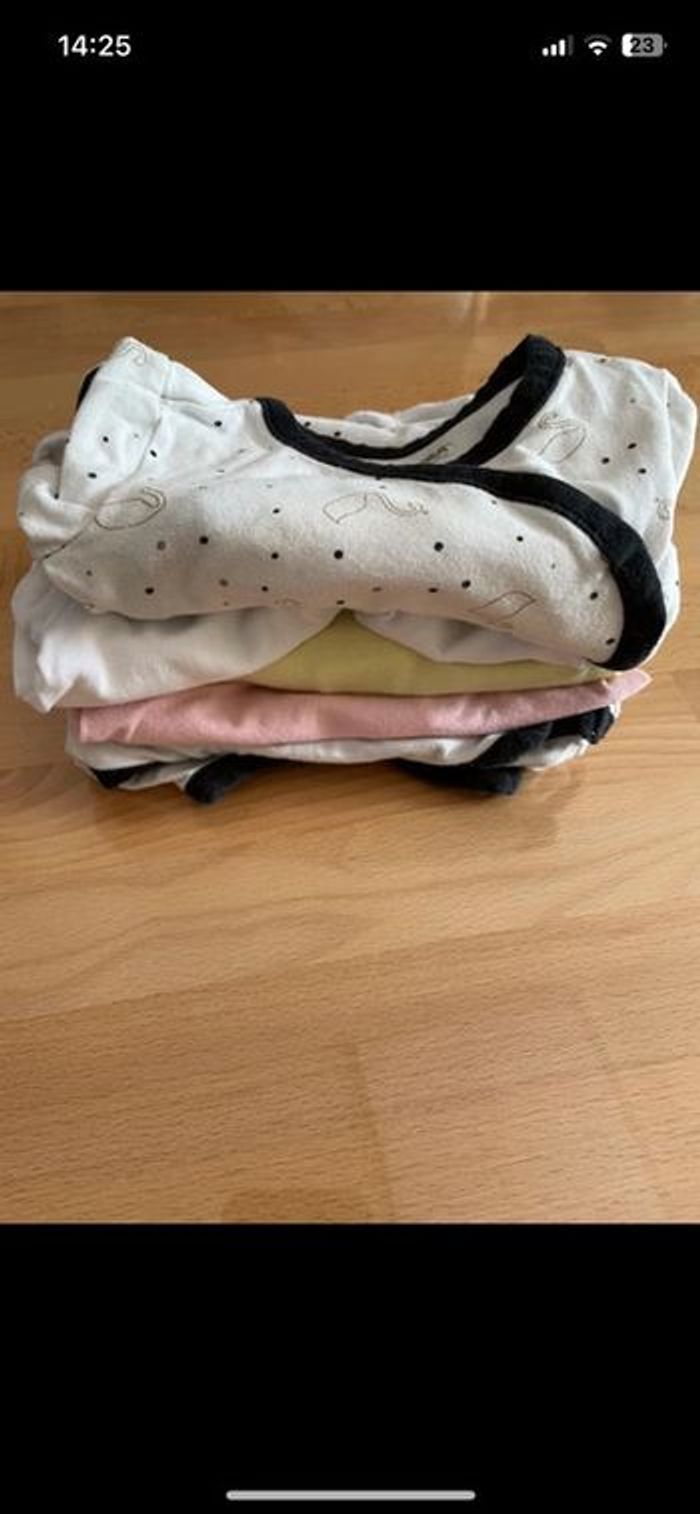 Lot de 5 bodies manches courtes en très bon état ( le rose a une petite tâche, voir photos mais est en très bon état ) Taille : 6 mois Marque : orchestra #rosinette2015_fille6mois