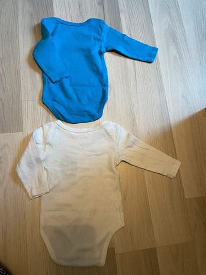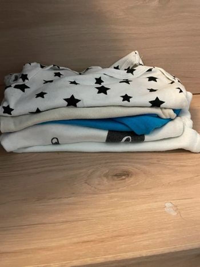 Lot de 5 bodies manches longues en très bon état ( le bleu est donné car a 2 petits trous recousus derrière, mais est en très bon état ) Taille : 3 mois Marque : 4 kiabi, 1 baby club #rosinette2015_garçon3mois
