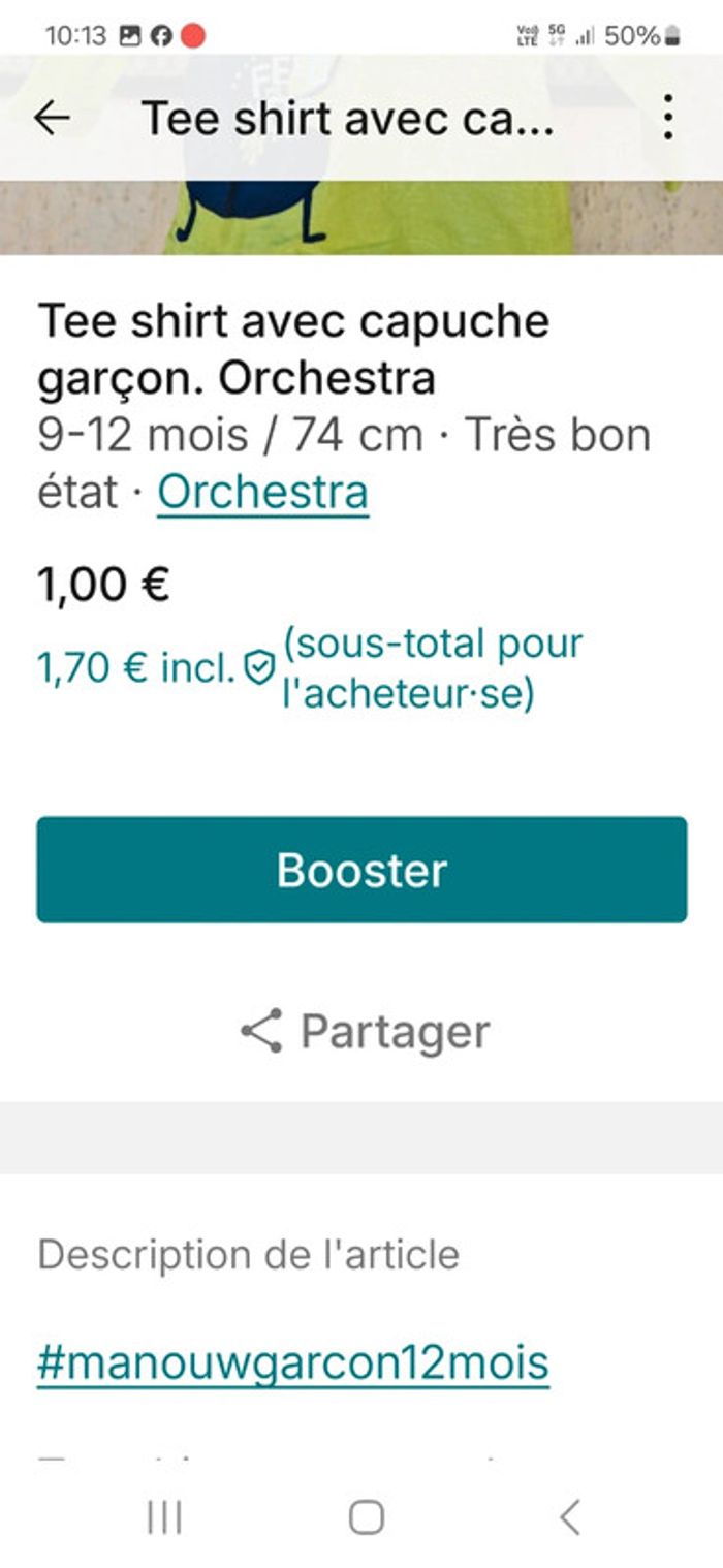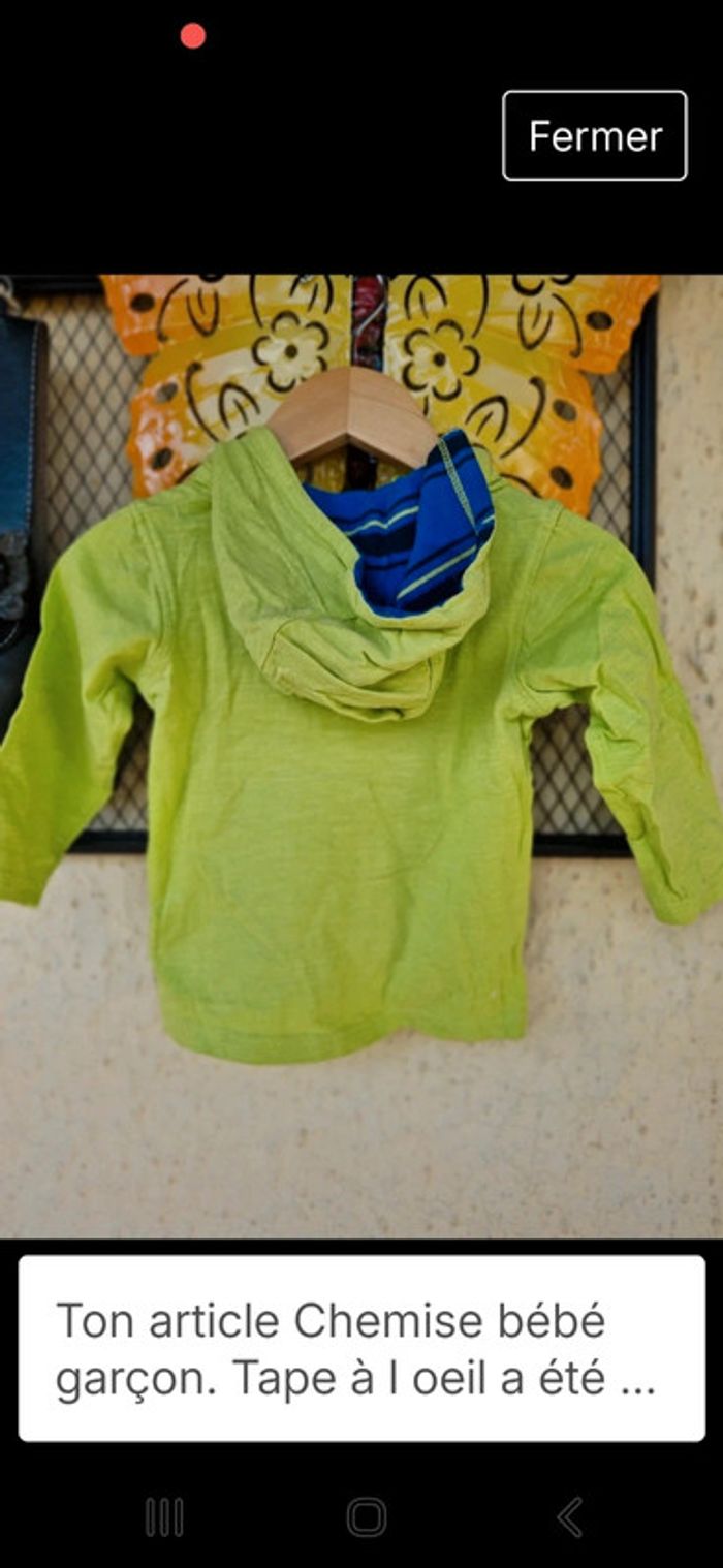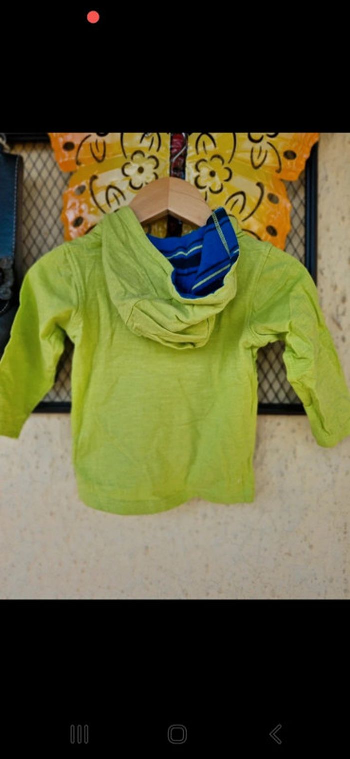 #manouwgarcon12mois Tee shirt garçon, avec capuche, manches longues, 100% coton couleur vert avec dessins noirs. Taille 12 mous. Marque orchestra Très bon état
