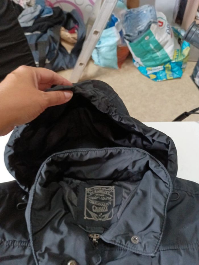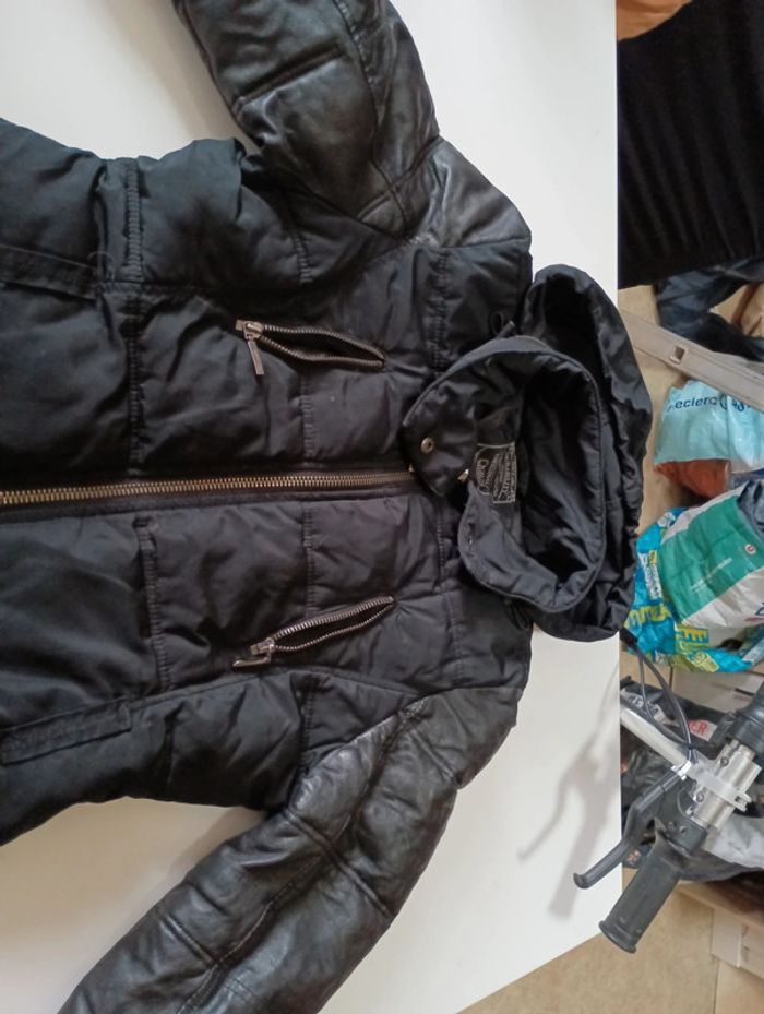 Doudoune femme Teddy Smith taille 2 en très bon état Manche en cuir de mouton véritable Capuche pouvant se cacher dans le col