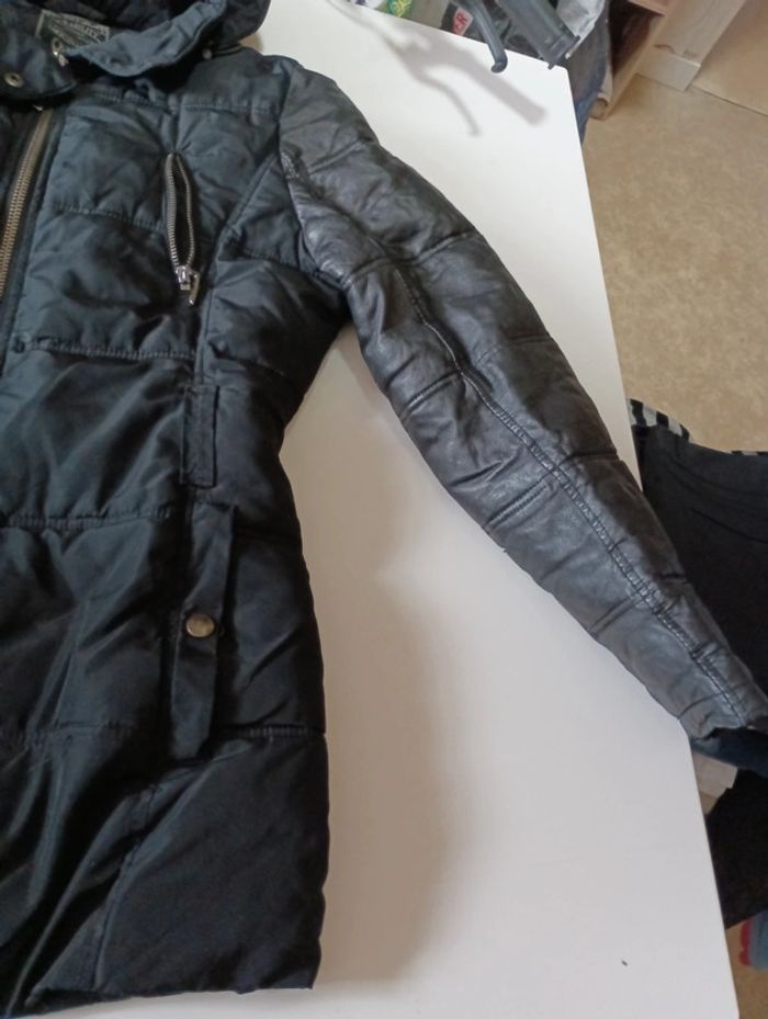Blouson doudoune femme Teddy Smith taille 2  cintré avec manche en cuir de mouton - photo numéro 4