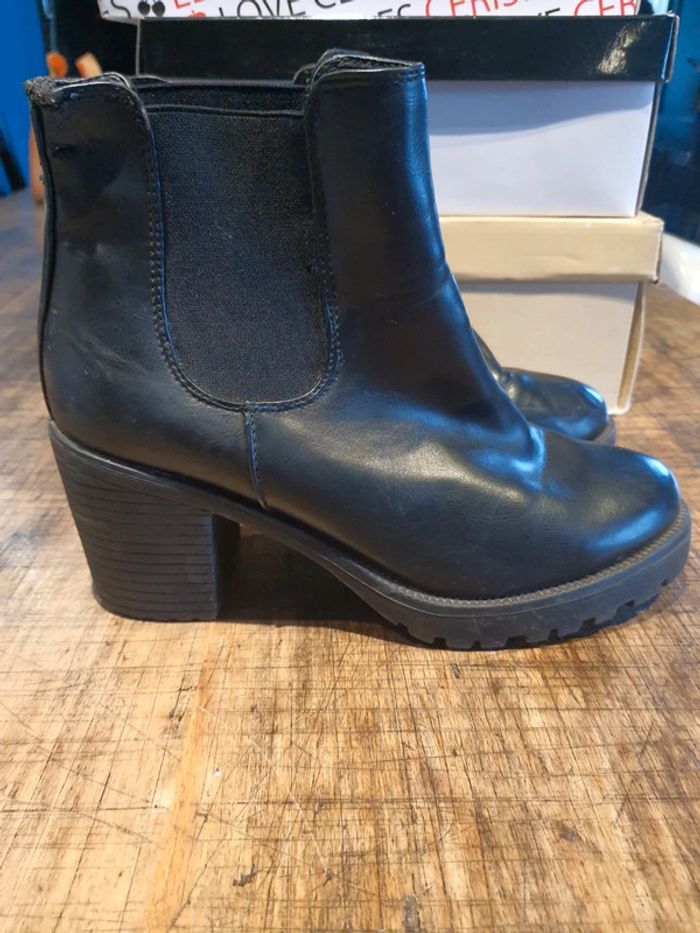 Botinnes noires portées quelques fois, talon 7 cm. Légères traces d usures