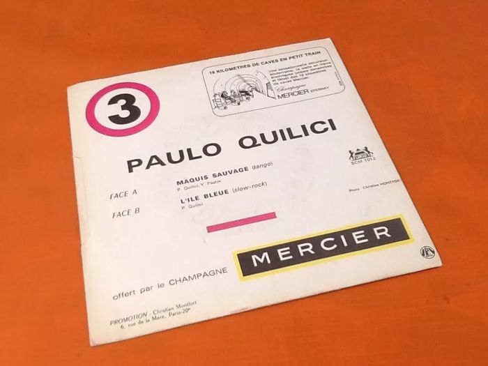 Disque publicitaire offert par le Champagne Mercier Epernay Vinyle 45 tours  Paulo Quilici - photo numéro 1