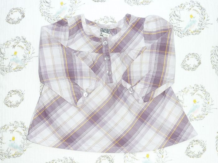 Blouse en excellent état, de marque TAO, imprimé à carreaux dans une jolie déclinaison de violet et parme. Etat excellent TAO Vide dressing professionnel
