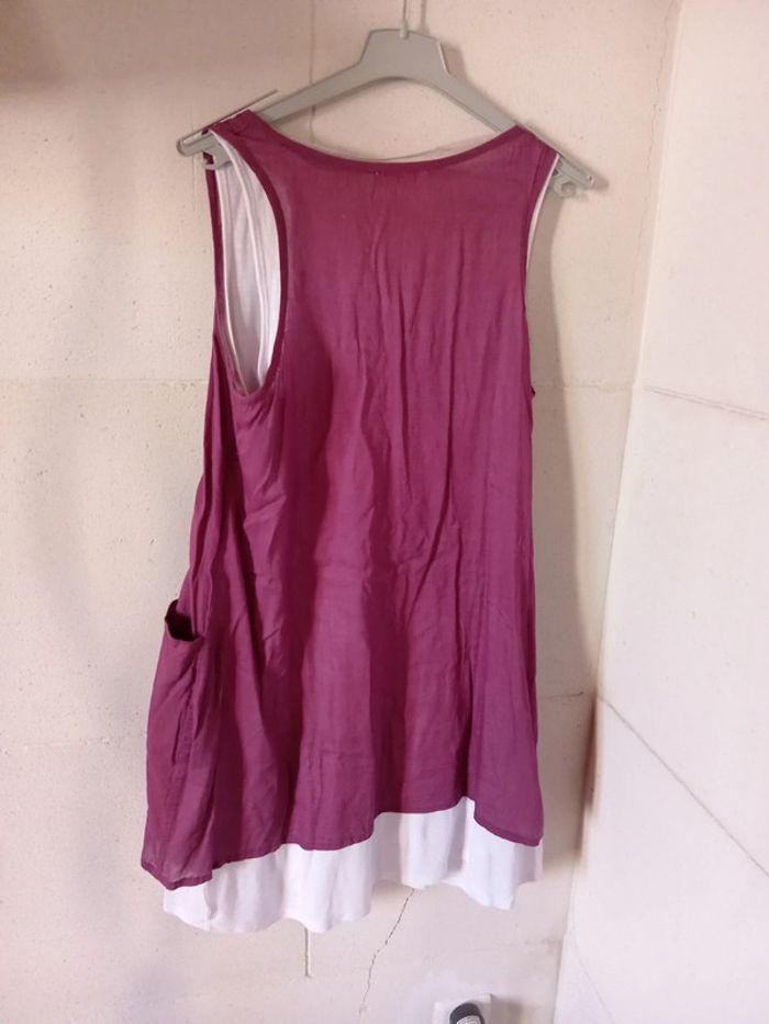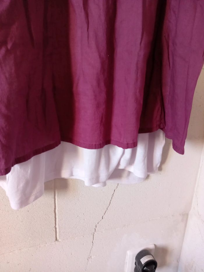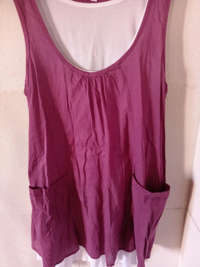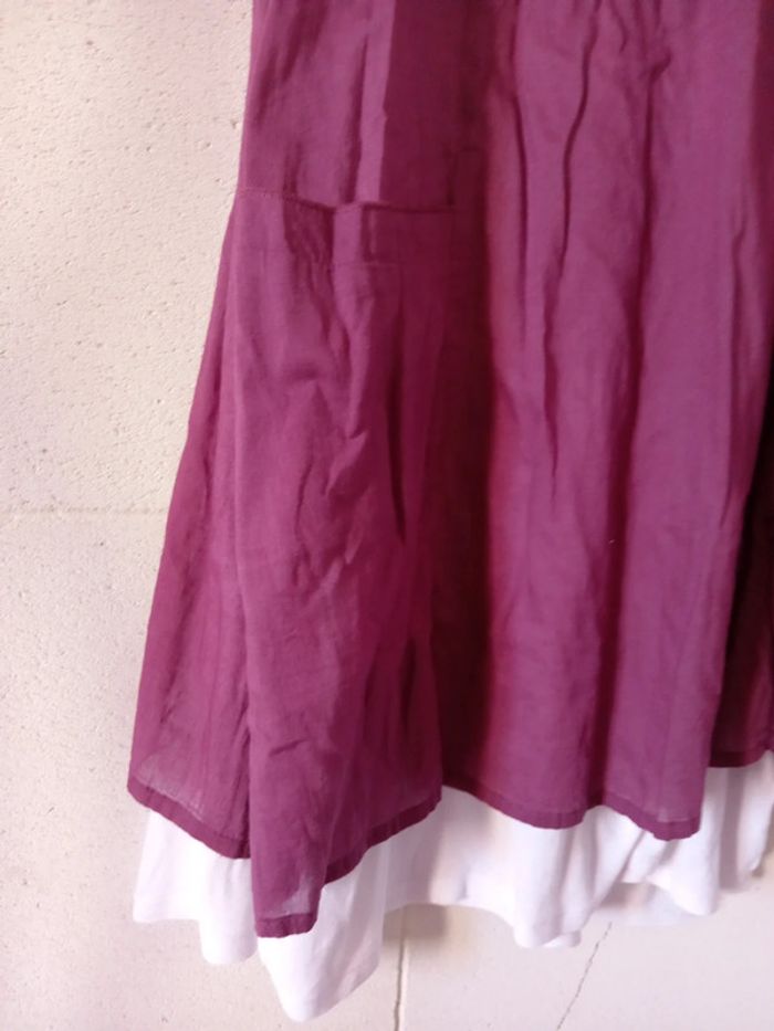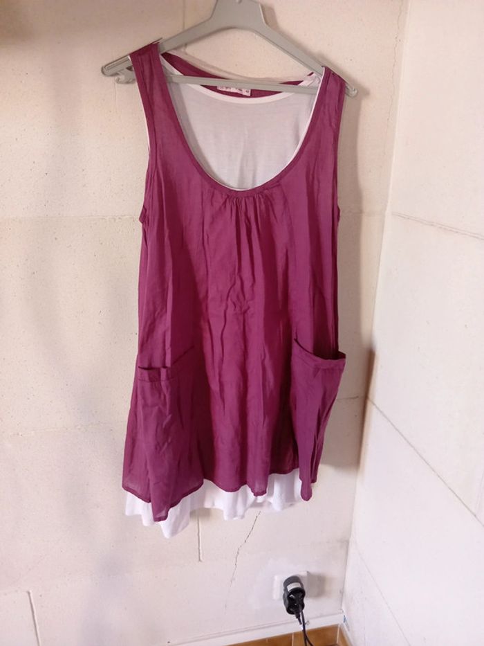 Tissu fin et léger dessus couleur prune, moins vif que sur les photos Avec 2 poches devant Robe jersey blanche dessous, plus longue. Un petit trou à l'intérieur qui ne se voit pas