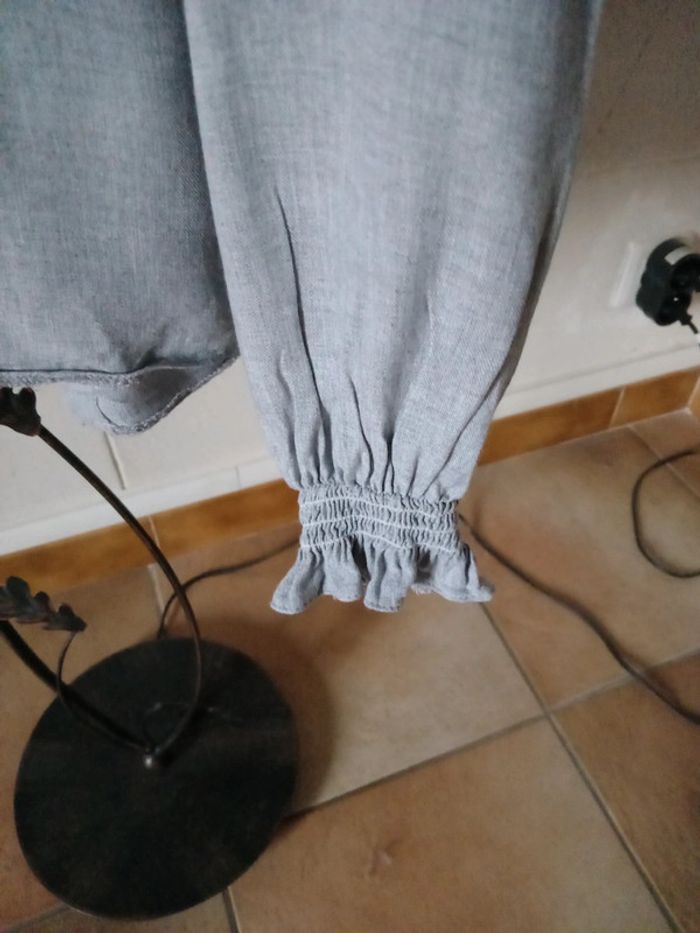Boutonnée dans le dos Manches froncées au poignets avec smocks Gris clair Petit défaut à l'emmanchure