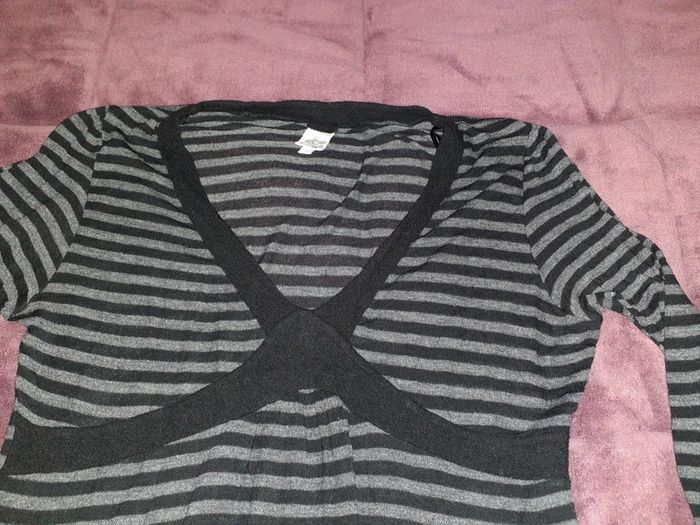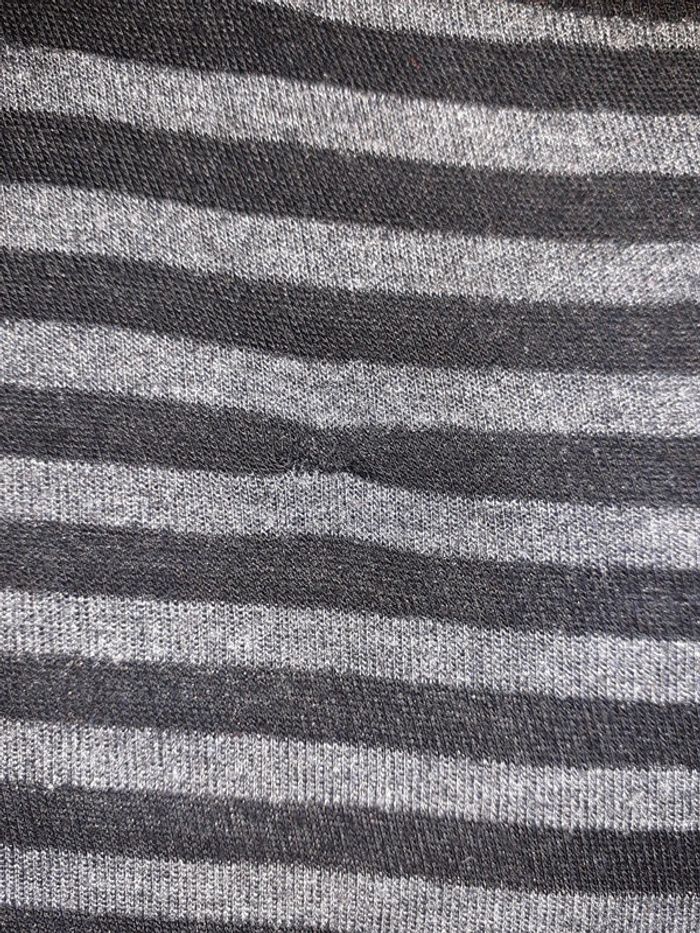 Col V Rayé noir, gris Pull fin. Quelques petits trous ont été recousus
