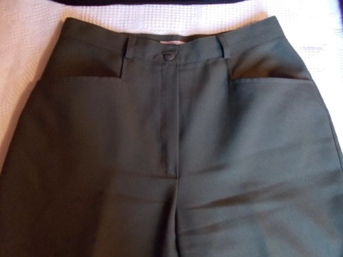 pantalon vert kaki 2 poches devant bonne tenue, sans repassage, étiquette effacée , largeur taille 36cm