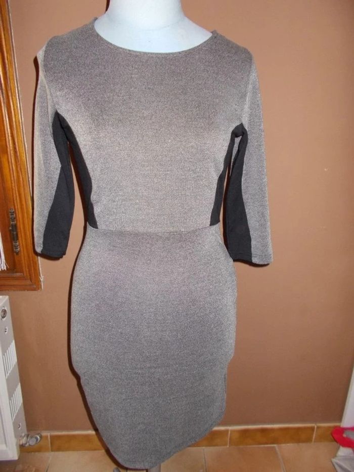 robe courte stretch gris chiné et noir Manches 3/4 peu portée