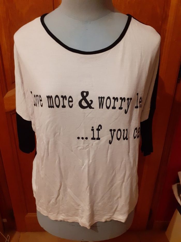 Tee-shirt large Blanc devant avec inscription, noir uni au dos