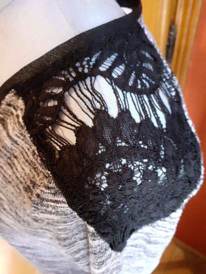 Manches longues Col V Dentelle sur les épaules Chiné