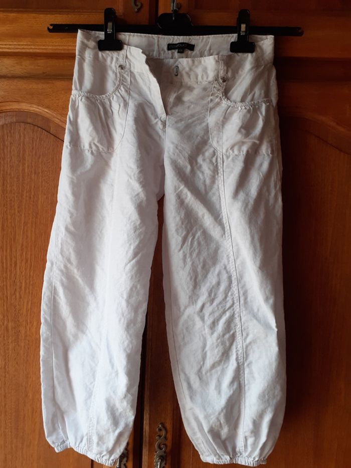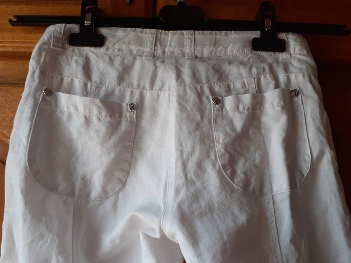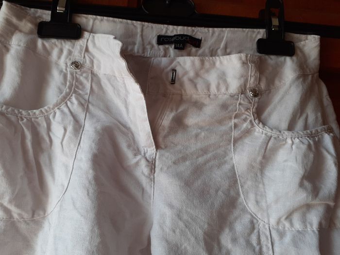 Pantacourt avec 2 poches devant et 2 poches derrière Élastiques bas de jambes Fermeture éclair et crochet , élastique de resserrage intérieur pour ajuster la taille 55% lin