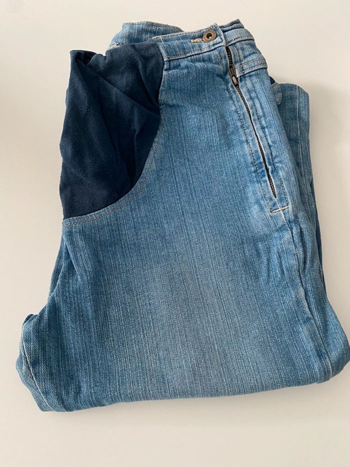 Jean de grossesse , taille 40 , bon état mais petite tache ( visible sur la photo ) sur une jambe . 5€
