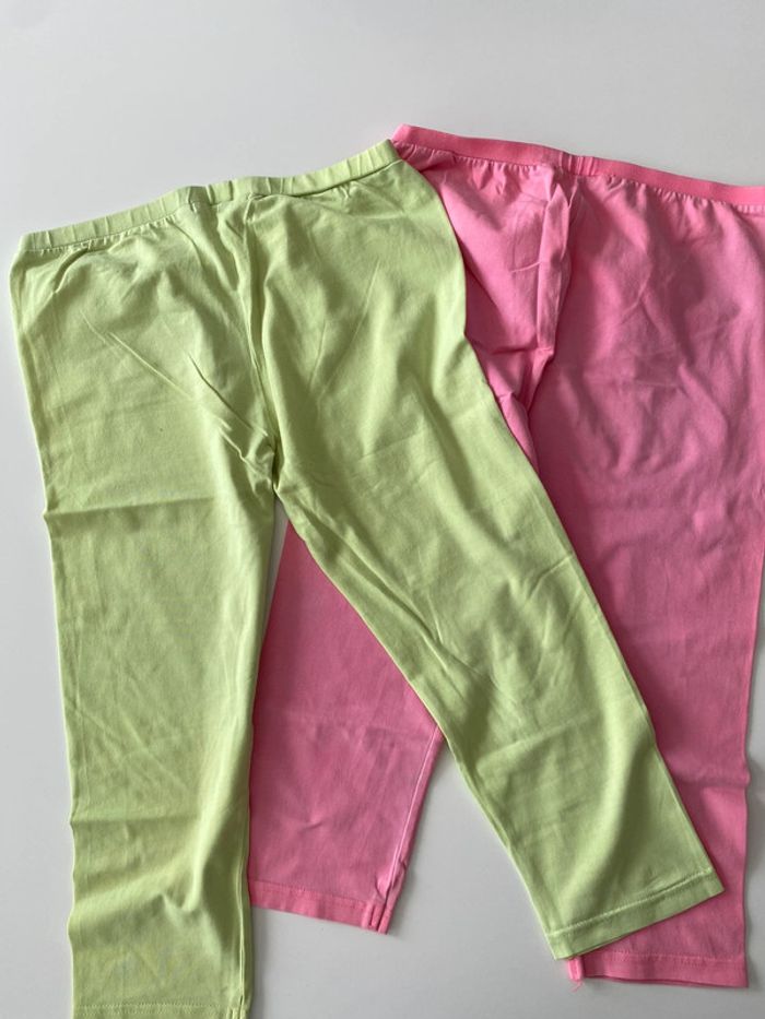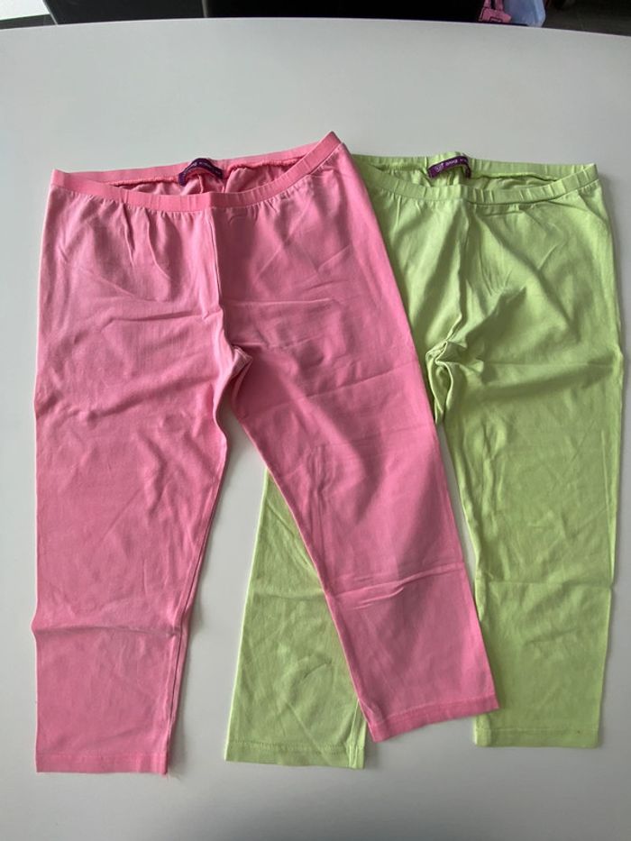 2 leggings / corsaires ( longueur : mollet ) 14 ans : rose et jaune/ vert