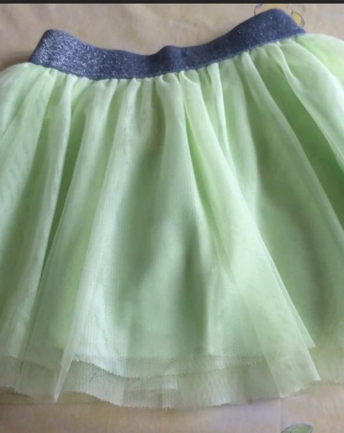 Jupe en tulle de la marque Gémo mise une seule fois . Couleur jaune / vert fluo avec ceinture pailletée argentée