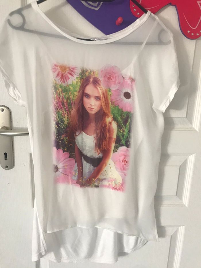 Joli t-shirt en voile et son débardeur , 13/14 ans . 4€