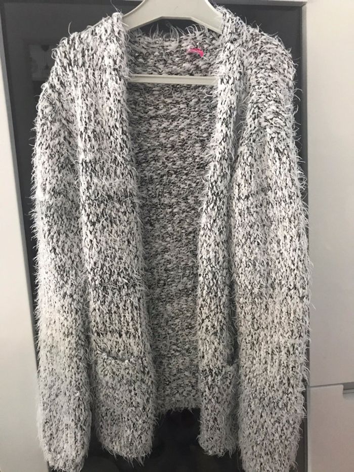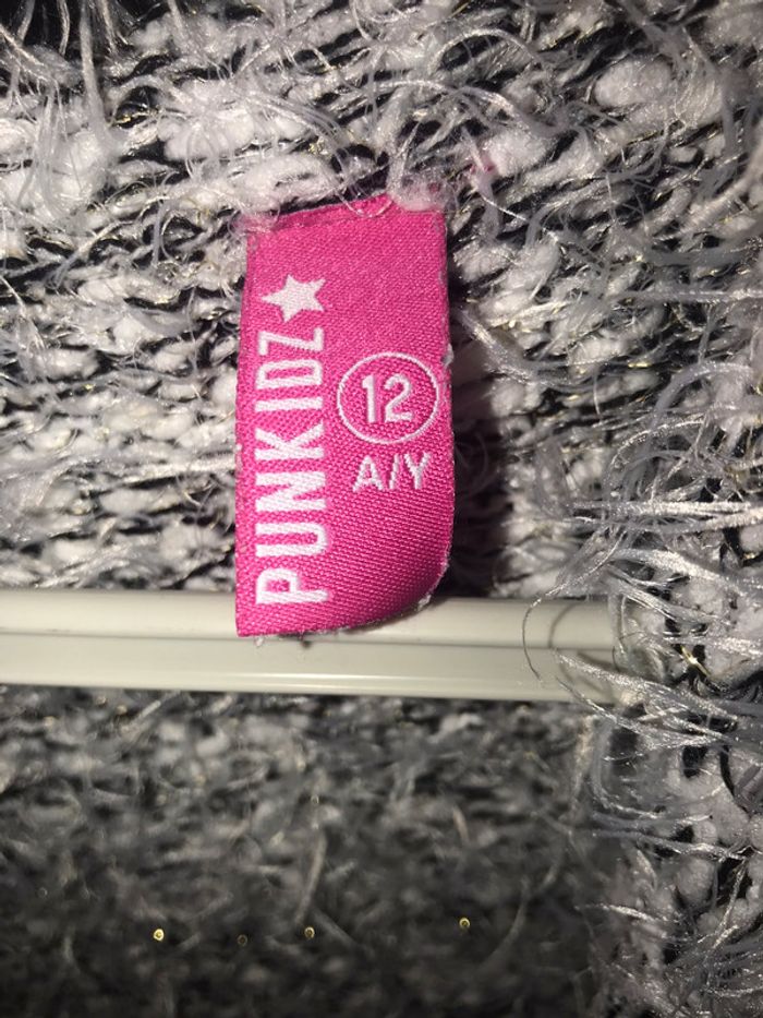 Gilet chaud et tout doux , très peu porté, 12 ans . Blanc / Noir/ Gris et fils dorés