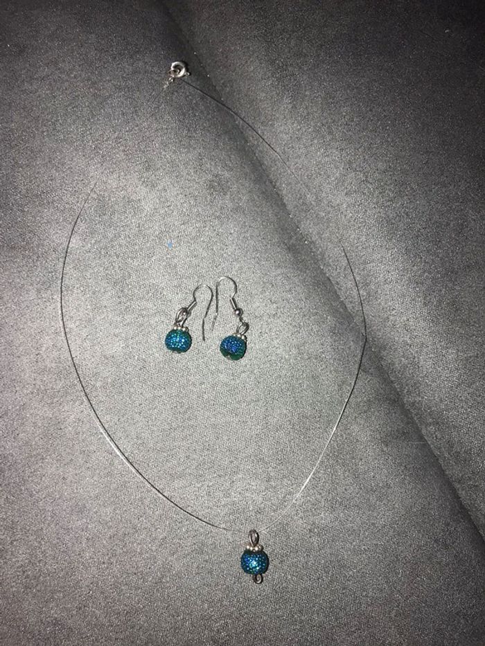un collier et les boucles d’oreilles assorties . Parure très peu portée