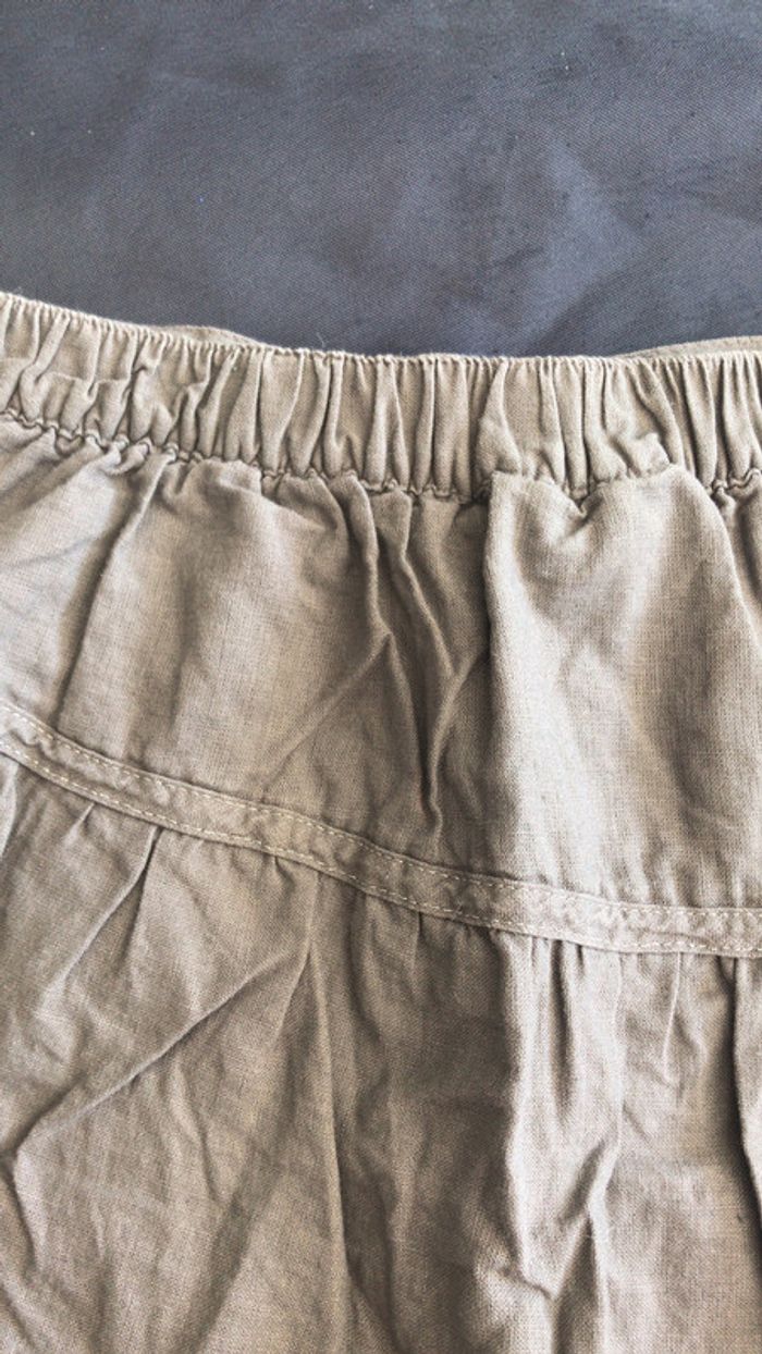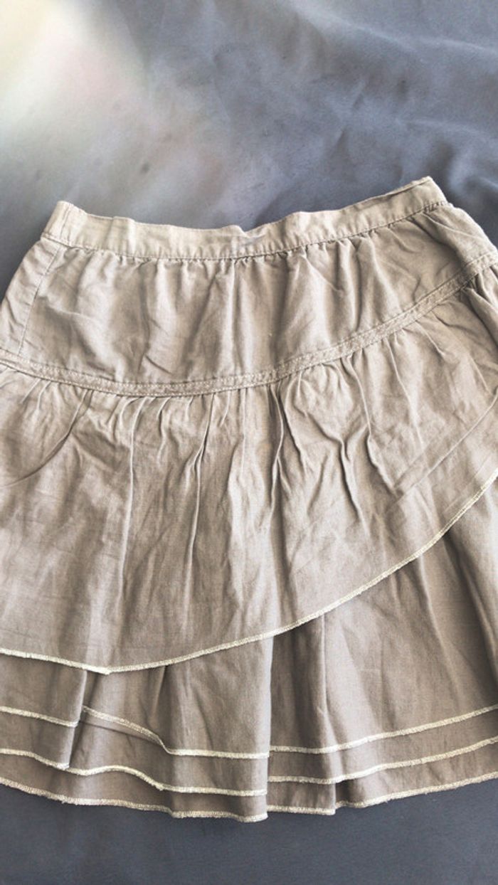 jupe à volants couleur taupe ; élastiquée à la taille ( sur l’arrière) . Jamais portée . 10 ans . En lin et coton