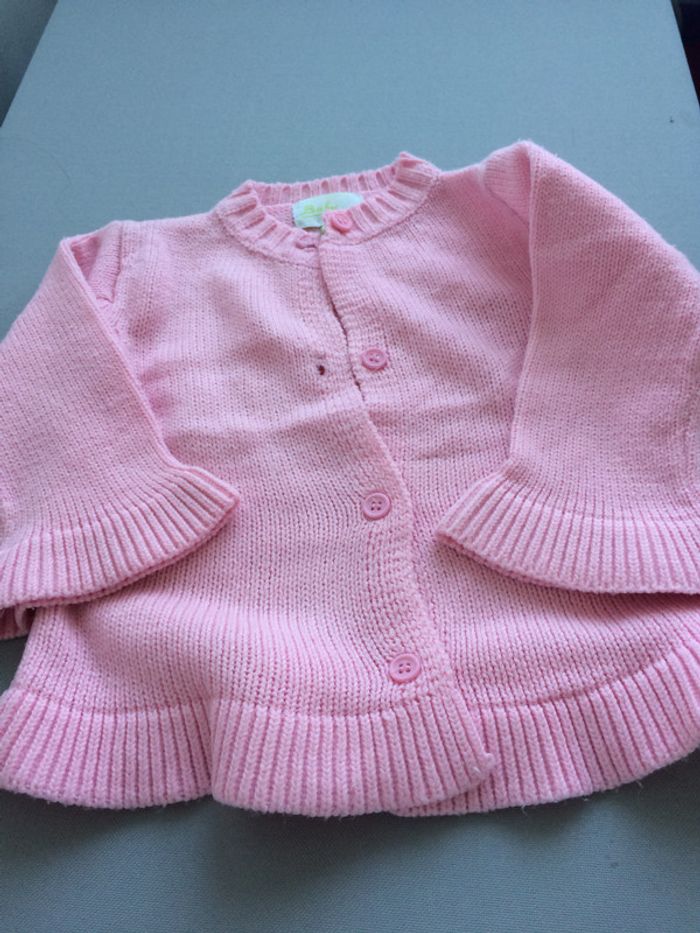 Gilet rose, 9 mois mais taille grand je trouve