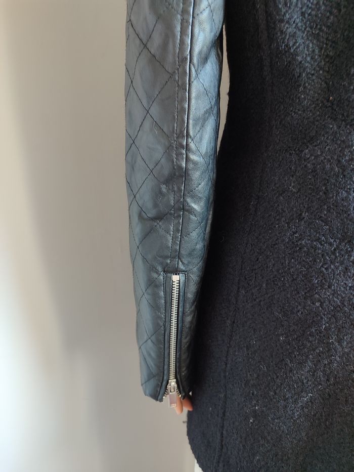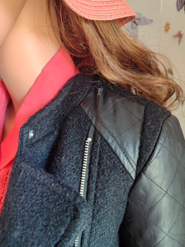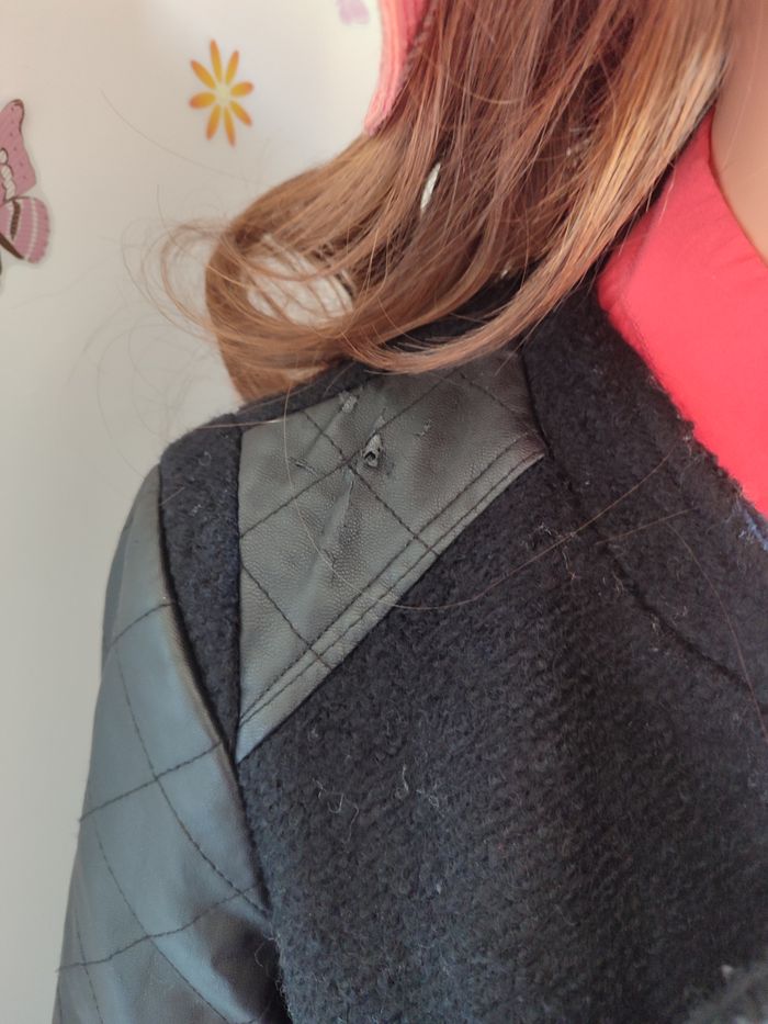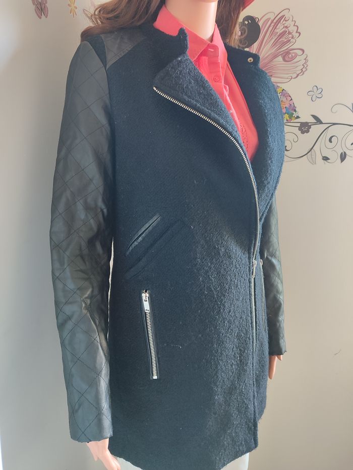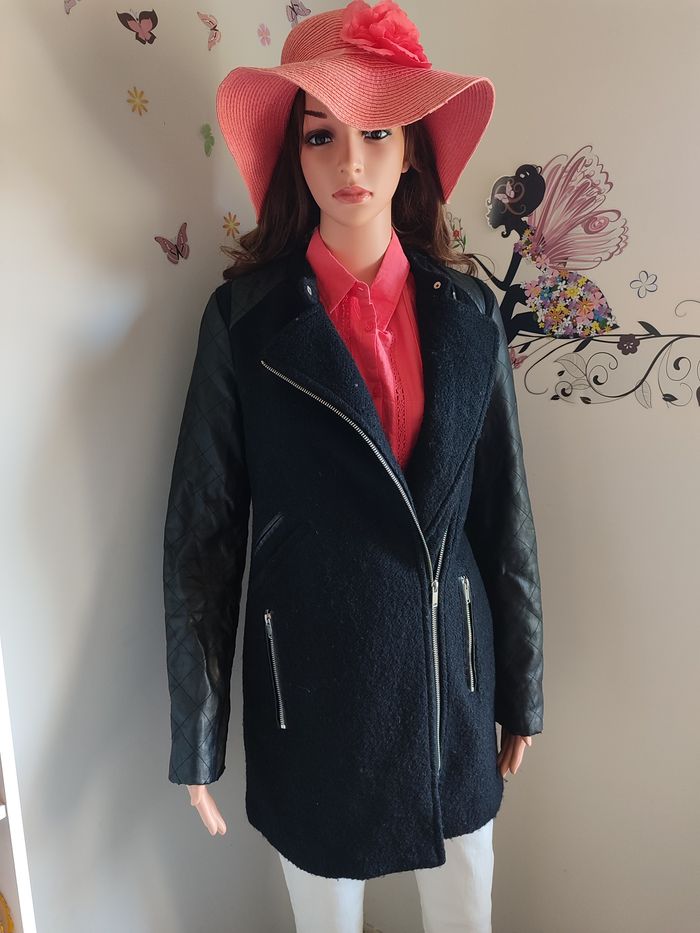 Manteau - Vero Moda - S Manteau chaud à zip sur le côté Manches et épaules en simili cuir Le manteau arrive sous les fesses avec une fente dans le bas du dos Une poche zip à gauche 2 fausses poches à droite + 1 poche zip Défaut : Accros sur le simili des épaules Taille : S / 36 Marque : Vero Moda Matière : 100% polyester #femmesrose64121