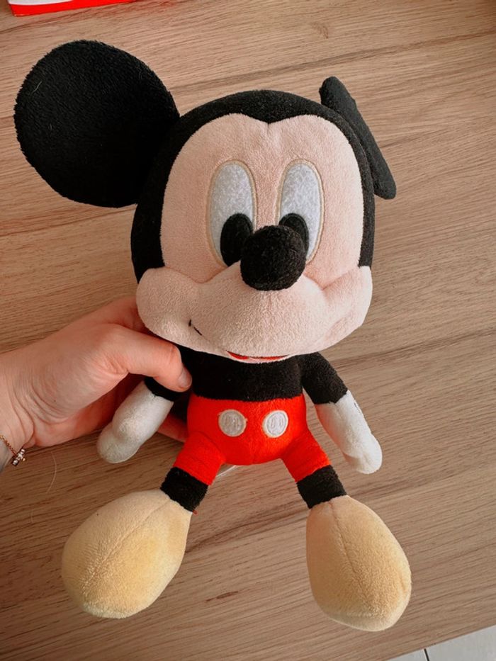 Peluche Mickey Taille : 30 cm de longueur Tête environ : 20 cm de large Acheter à Disney Bon état