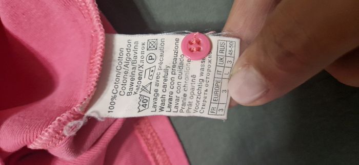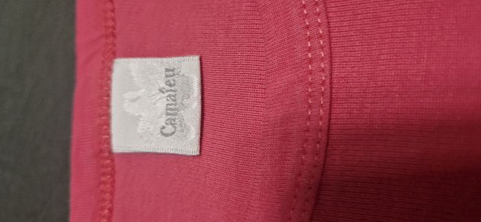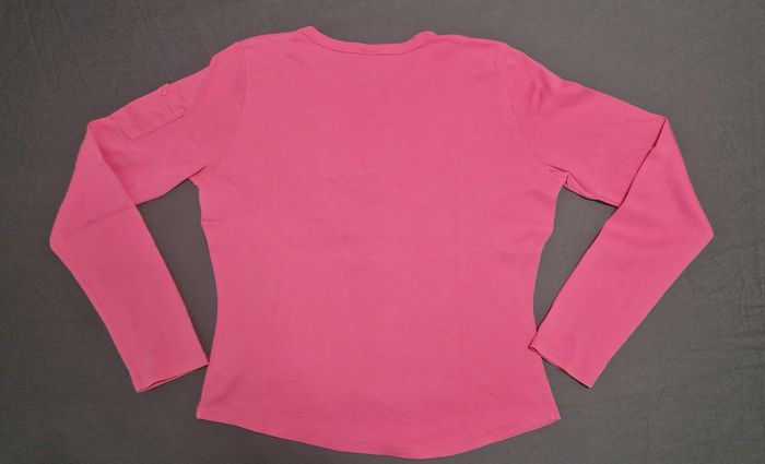 T-shirt ajusté Camaïeu rose bonbon à col rond et manches longues - une petite poche boutonnée sur la manche gauche - bouton de secours fourni Taille 3 / L - Excellent état