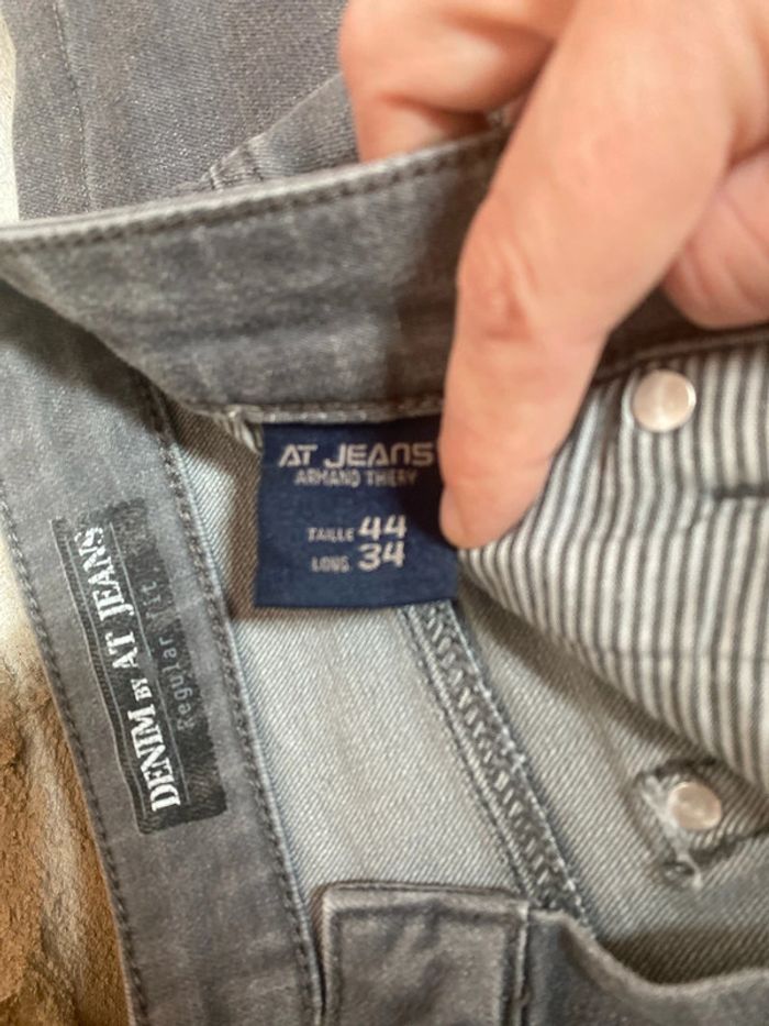 Jeans très très bonne état Couleur Gris Bien regarder photos avec mesures entrejambe ourlet fait Taille 44