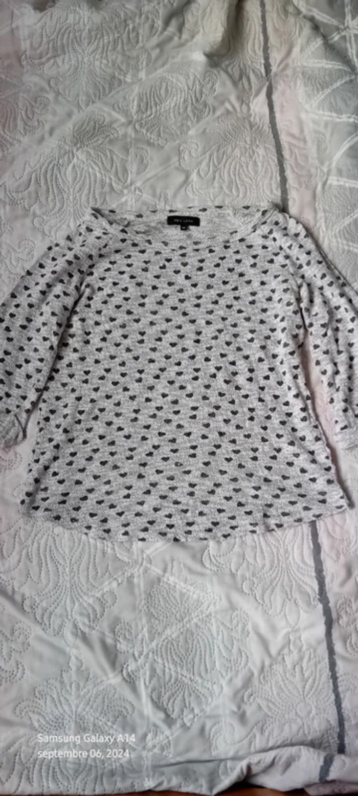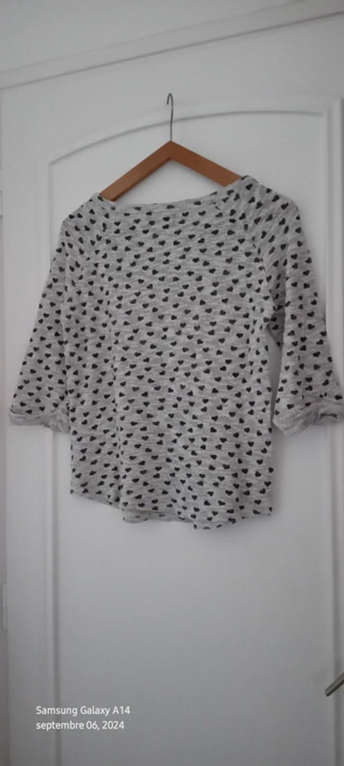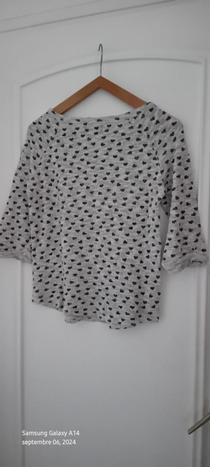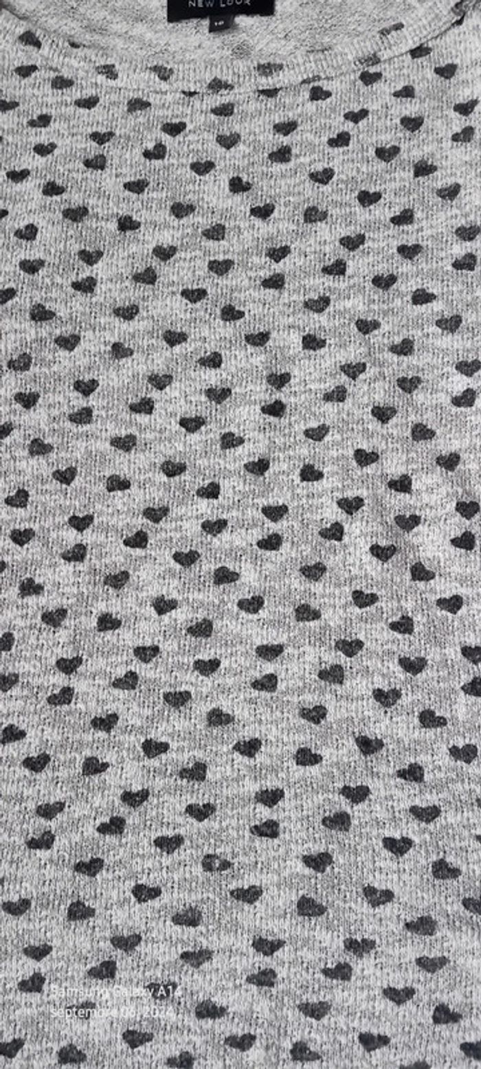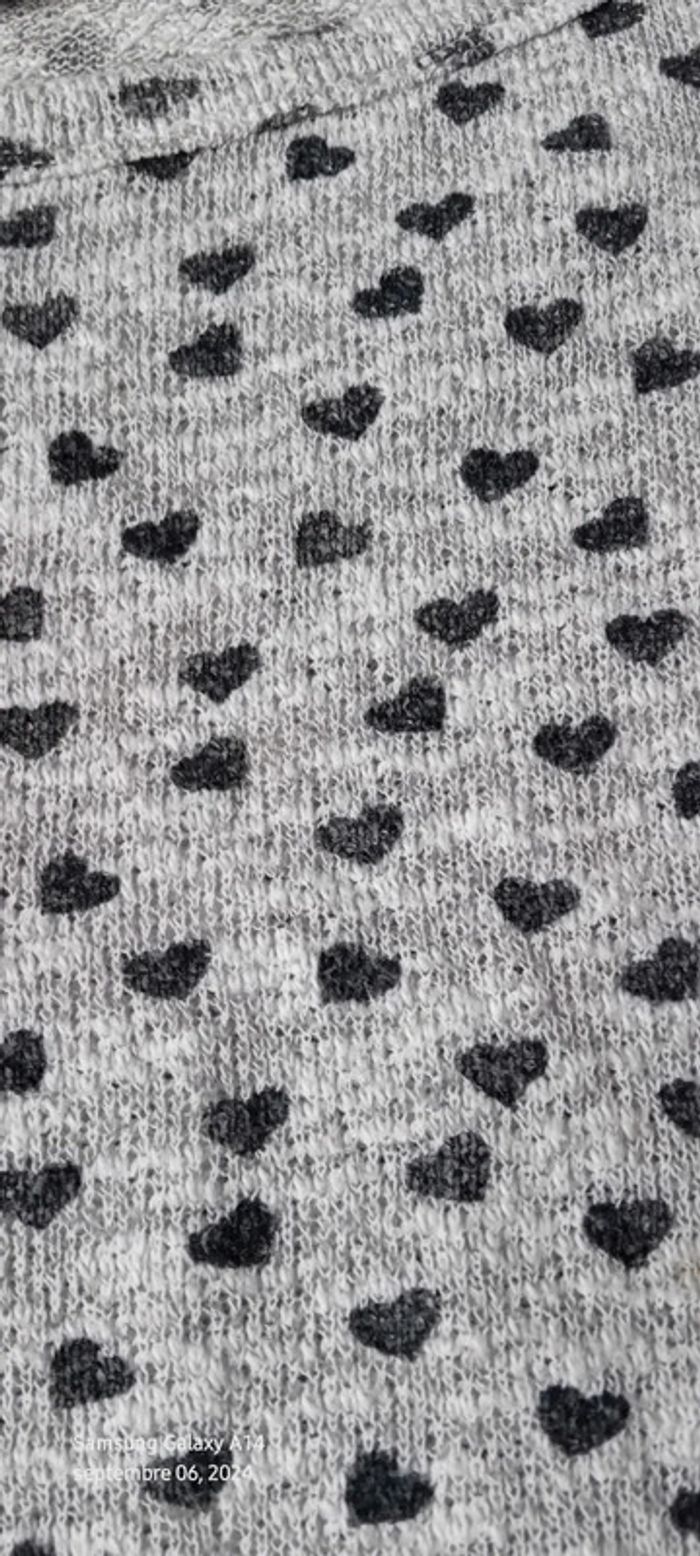 Pull fin manches 3/4 motif coeurs gris femme 38 new look - photo numéro 14