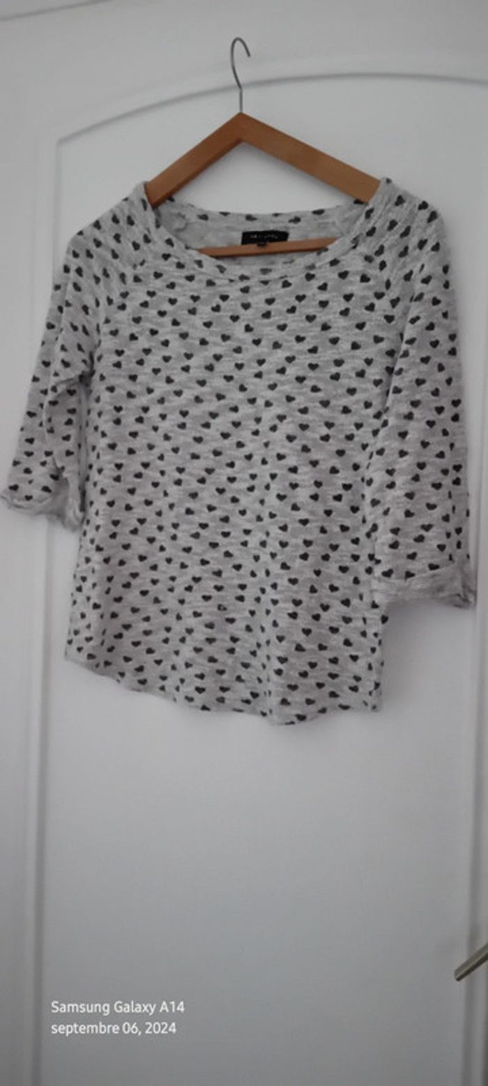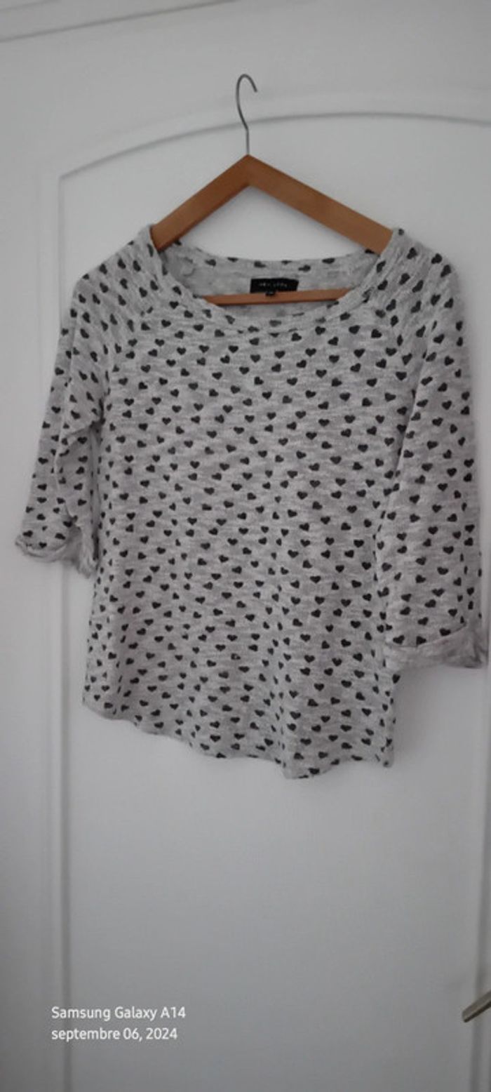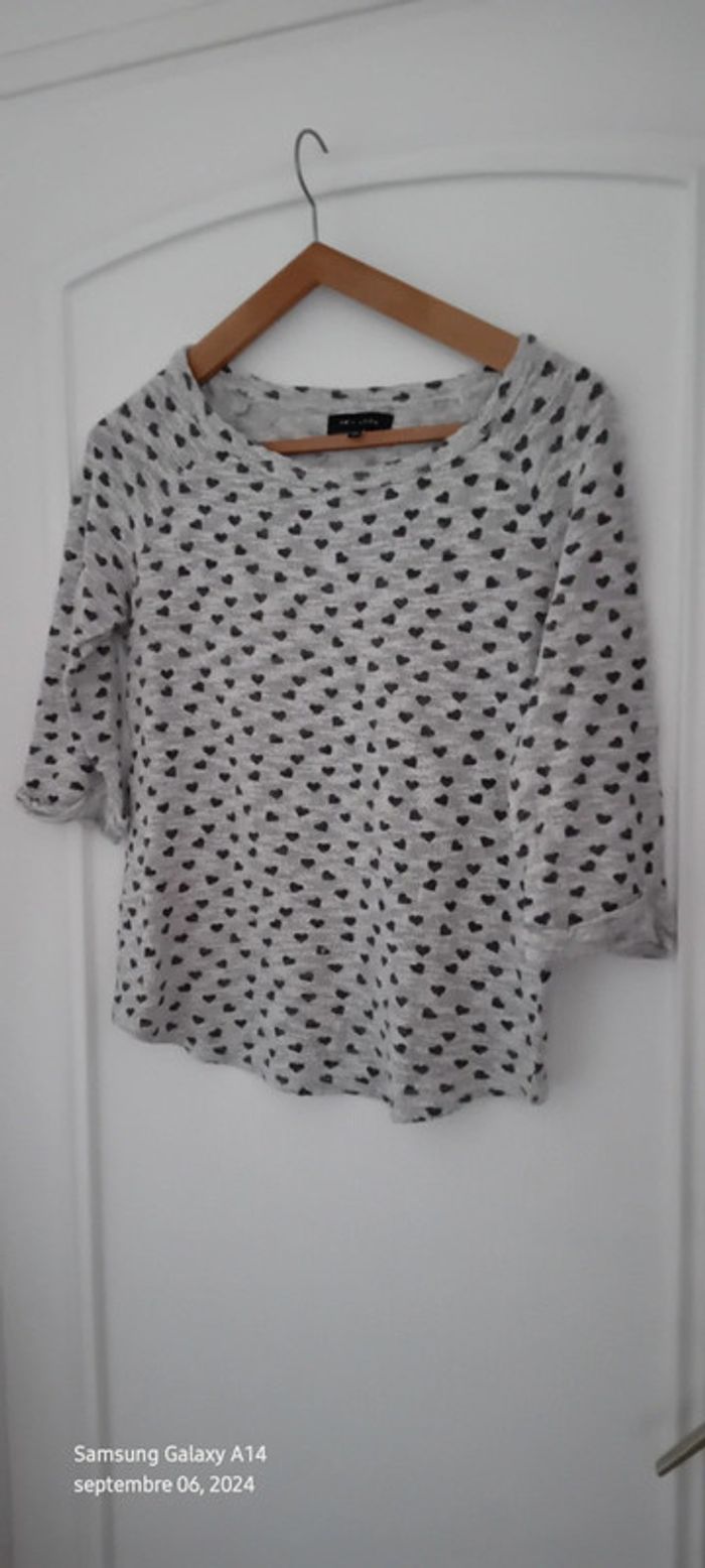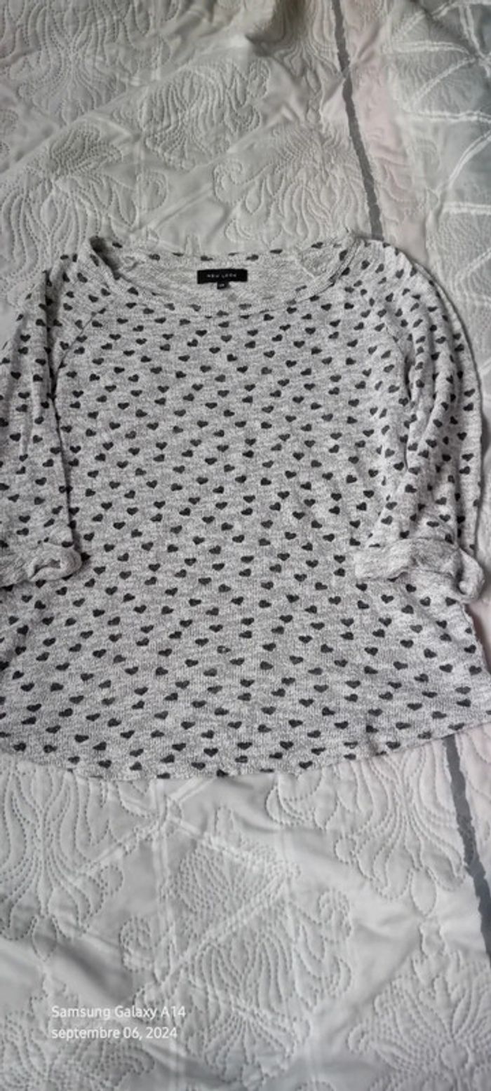 Pull fin manches 3/4 motif coeurs gris femme 38 new look - photo numéro 1