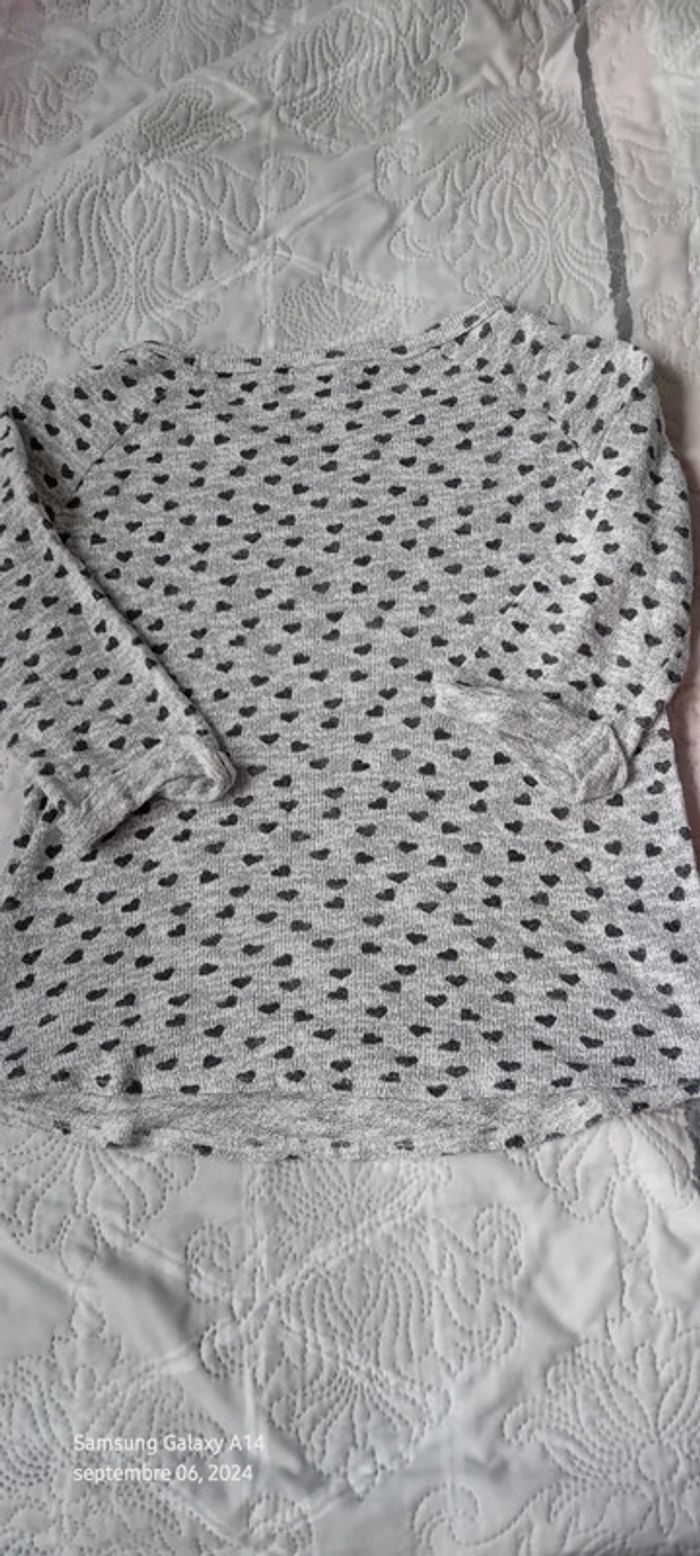 Pull fin manches 3/4 motif coeurs gris femme 38 new look - photo numéro 19