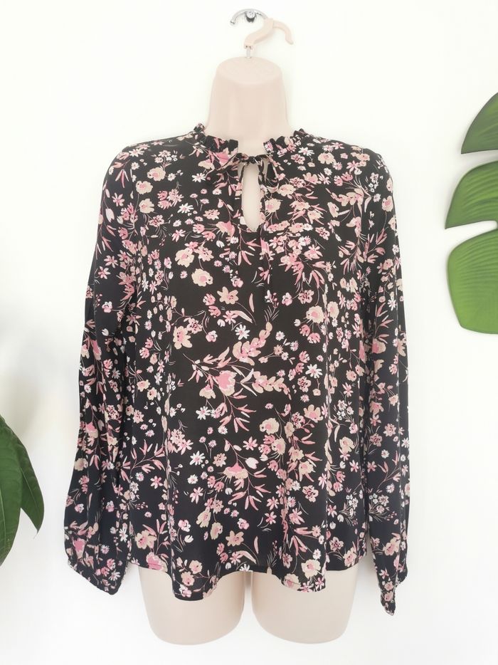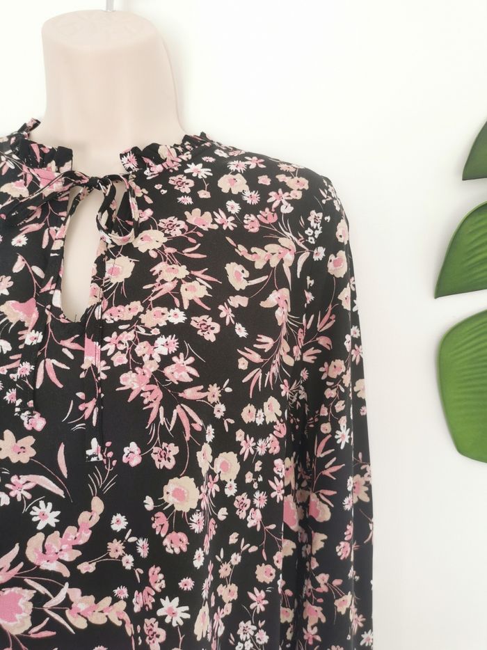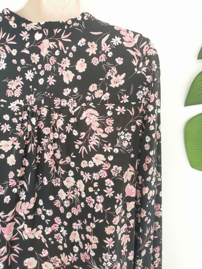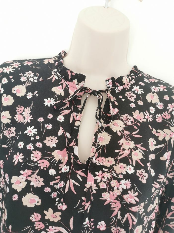 🙎‍♀️ ÉTAT DE L'ARTICLE: 10/10 ✅️ Sans étiquette, jamais portée 📷 Photo portée du site disponible en message privé 📷 Blouse fleurie 👩 B Young Taille 34 • Matière: 100% viscose • Col découpe V avec liens • Manches longues elastiquées au poignet • Imprimé fleuri 🌹🌹🌹 • Couleur: Noir ⚫️ • 📏 Mesure épaules: 36 cm • 📏 Mesure sous aisselles: 50 cm • 📏 Longueur: 60 cm 💰 Prix boutique: 39.95€ Parfait état👌, jamais portée 🟠🟠