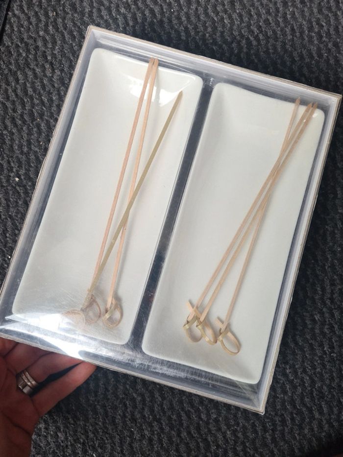 Livre de recette de brochette et yakitori avec 2 plats porcelaine et 6 brochette réutilisable