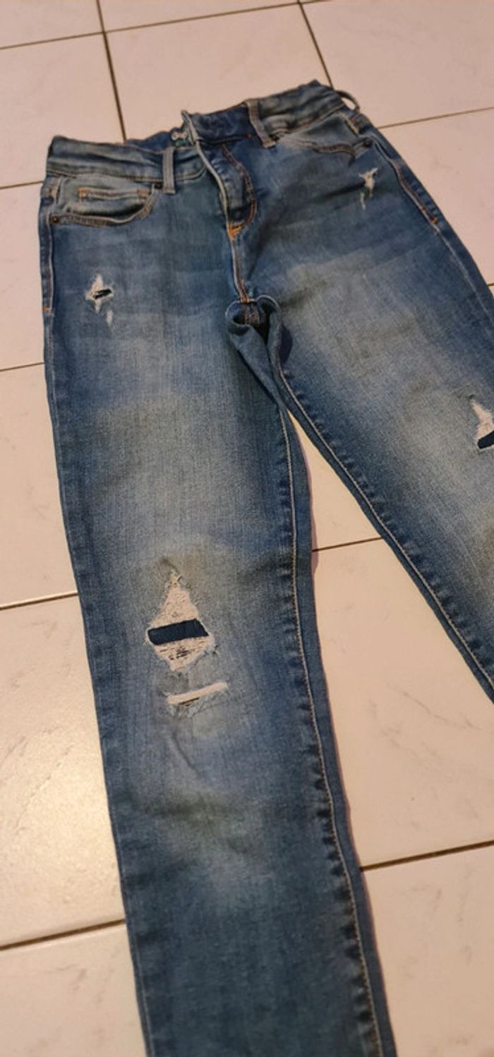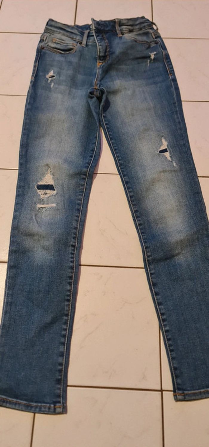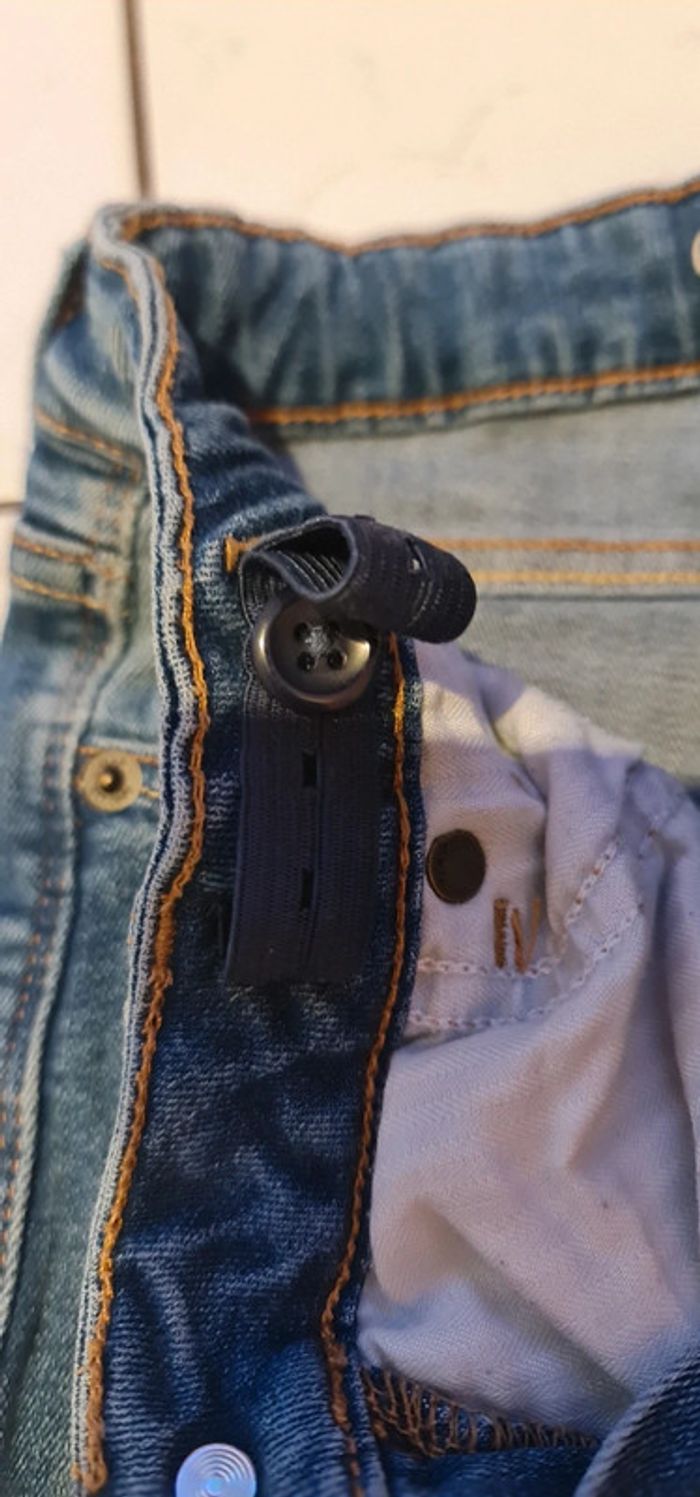 Beau jean Taille réglable il y a un côté de l élastique à serrer qui ne fonctionne plus juste au début après il y a les trou peut être recousu pour éviter plus qui s enleve #noemie_12ans