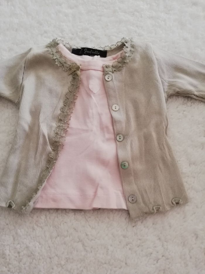 Tee shirt rose et gilet vert lili gaufrette fille 3 mois - photo numéro 1