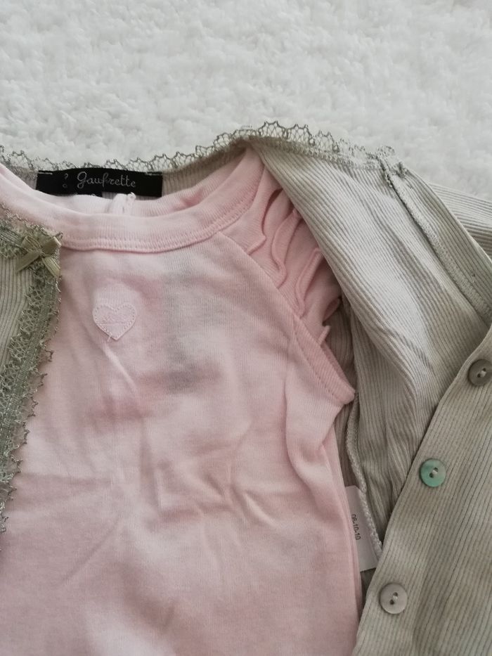 Tee shirt rose et gilet vert lili gaufrette fille 3 mois - photo numéro 3