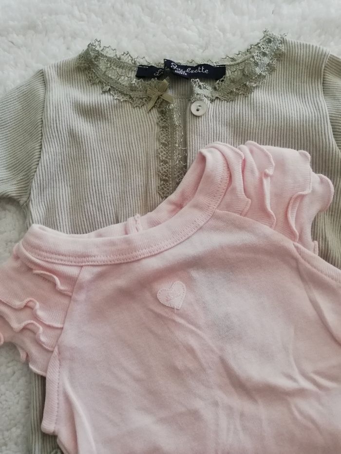 Tee shirt rose et gilet vert lili gaufrette fille 3 mois - photo numéro 2