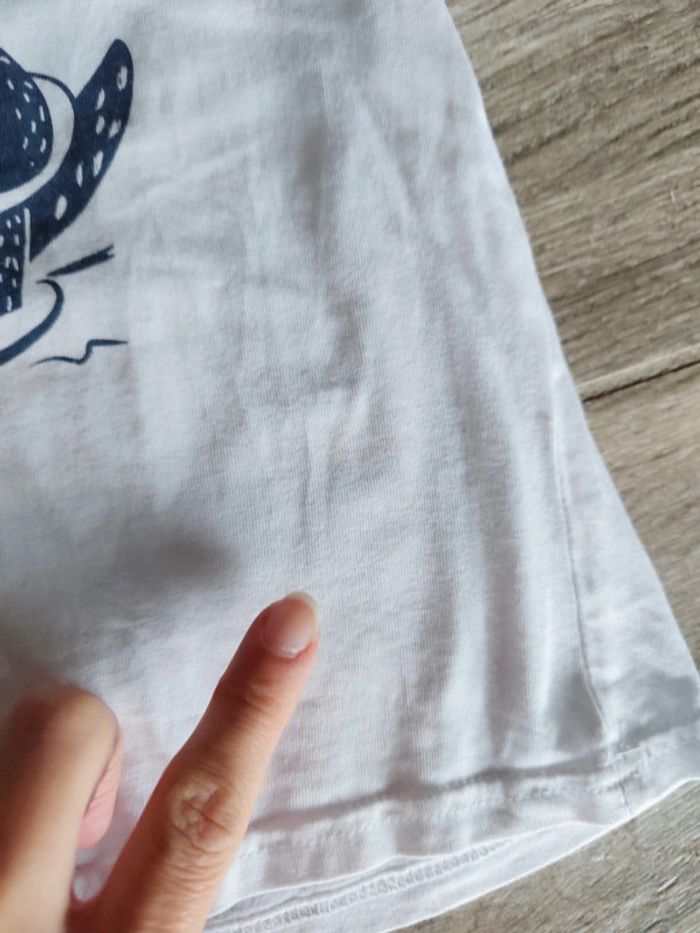 Quelques petites traces cf photos. J'ai d'autres t-shirt. Je fais du tri dans les placards, n'hésitez pas à faire des lots et à vous abonner je dois faire de la place. Pour retrouver tous les articles de la même taille/marque/thème, cliquez sur mon lien #garcon3ans_ladouks