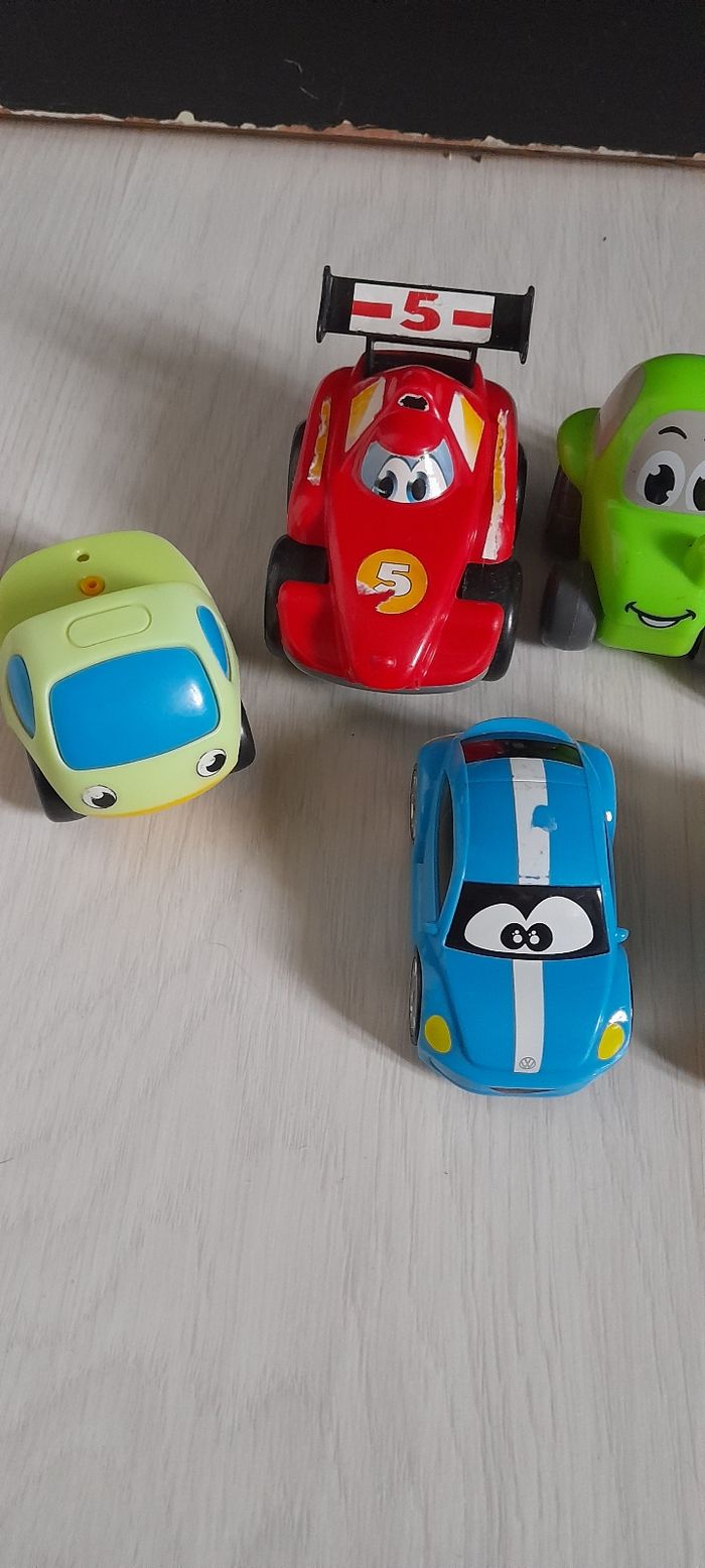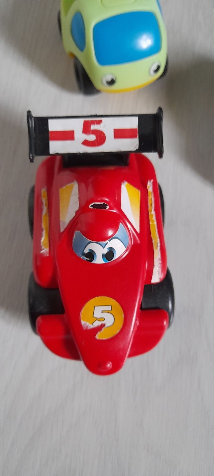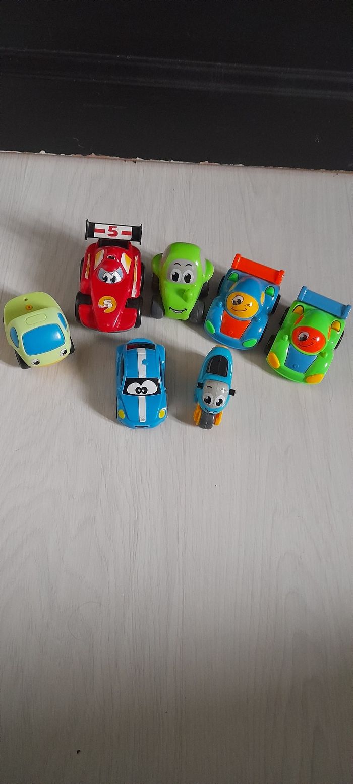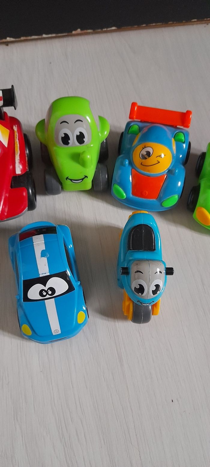 Lot de 7 véhicules dont 2 à friction Très très bon état juste légère imperfections aux niveaux des autocollants sur la voiture de course