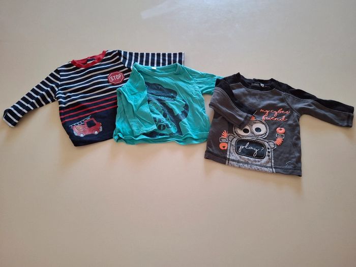 Vend lot de 3 t-shirt manches longues bébé garçon en taille 6 mois. Possibilité de remise en main propre Lot-et-Garonne/ Tarn-et-Garonne.