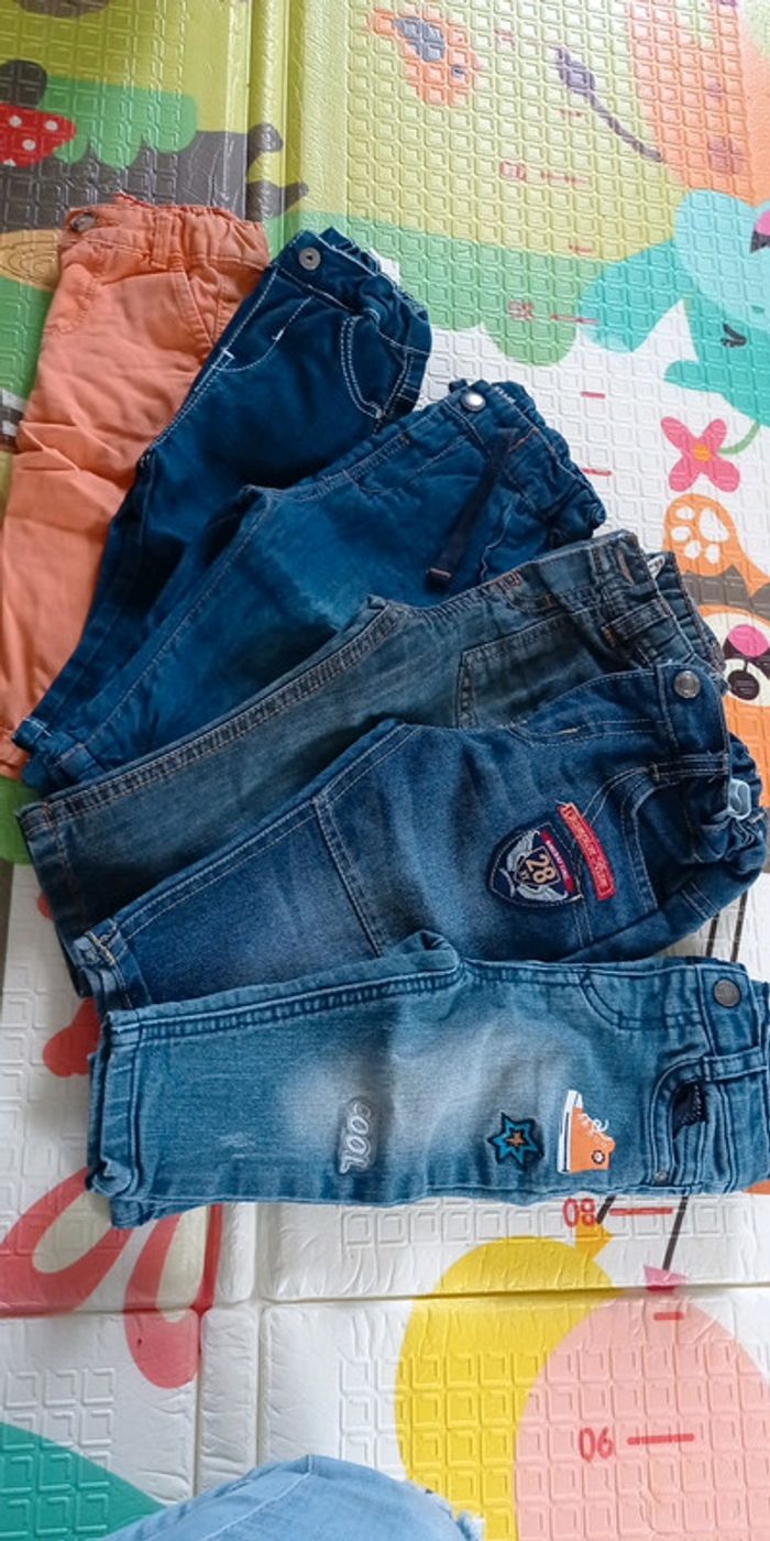Lot pantalon 6 mois Type jeans 1 er marque orchestra 2 ème je ne sais pas 3 ème tape a l'oeil 4 ème Kiabi 5 ème je ne sais pas 6 ème tape a l'oeil #mariar23garcon6mois